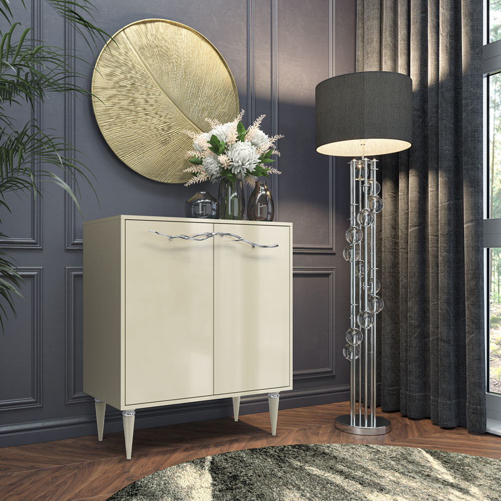 Комод Арт Колор с распашными дверцами и регулируемыми полками совмещает в себе функциональность и стильный дизайн.Комод максимально универсален и будет уместен в любой комнате: как самодостаточный элемент дизайна, как часть большой системы хранения, как единый функциональный ансамбль, например, с настенным зеркалом. По дизайну комод Арт гармонично сочетается с любой мебелью от скандинавского стиля IKEA (Икеа) до роскошного ар-деко, а благодаря широкой палитре цветов (12 оттенков), такой предмет мебели легко вписать в любой интерьер.Комод Арт Колор дарит вам максимальный простор для фантазии!Изюминка изделия: шикарная кованая ручка в форме ветви дерева – ручная работа кузнеца. Фасад может быть гладким, а также украшенным тропическими листьями. Корпус изделия выполнен из высококачественного МДФ, ножки – из бука. Покрытие на ножках комода различается в зависимости от модели.Комод отлично подойдет в качестве подарка новоселам для создания уюта в доме!