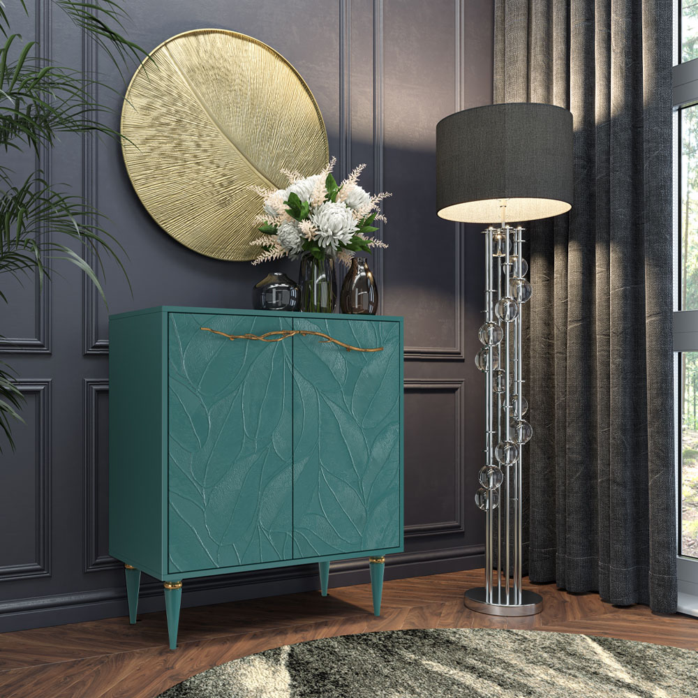 Комод Арт Колор с распашными дверцами и регулируемыми полками совмещает в себе функциональность и стильный дизайн.Комод максимально универсален и будет уместен в любой комнате: как самодостаточный элемент дизайна, как часть большой системы хранения, как единый функциональный ансамбль, например, с настенным зеркалом. По дизайну комод Арт гармонично сочетается с любой мебелью от скандинавского стиля ikea (Икеа) до роскошного ар-деко, а благодаря широкой палитре цветов (12 оттенков), такой предмет мебели легко вписать в любой интерьер.Комод Арт Колор дарит вам максимальный простор для фантазии!Изюминка изделия: шикарная кованая ручка в форме ветви дерева – ручная работа кузнеца. Фасад может быть гладким, а также украшенным тропическими листьями. Корпус изделия выполнен из высококачественного мдф, ножки – из бука. Покрытие на ножках комода различается в зависимости от модели.Комод отлично подойдет в качестве подарка новоселам для создания уюта в доме!