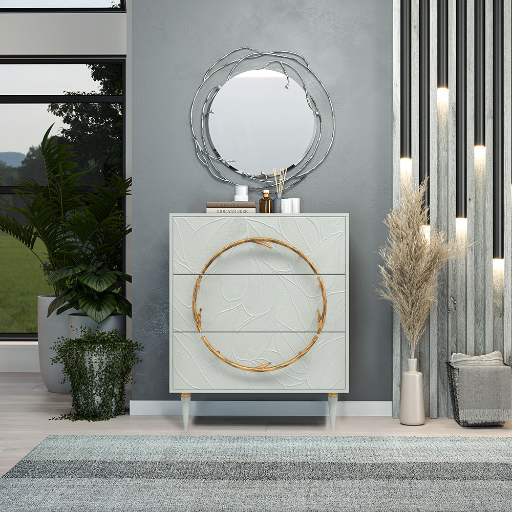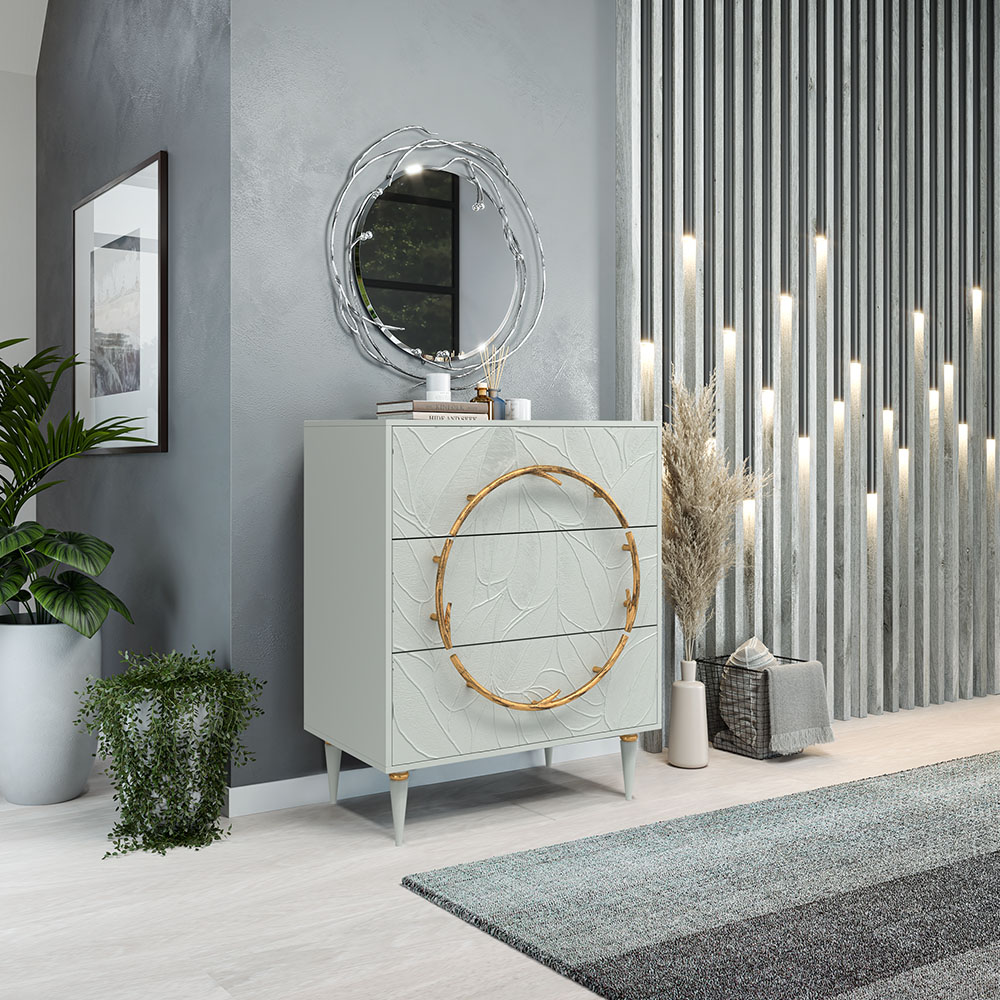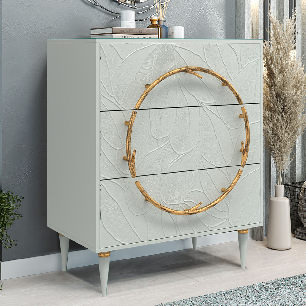 Комод Арт Колор leaves Классик Голд с 3 ящиками Серый дым