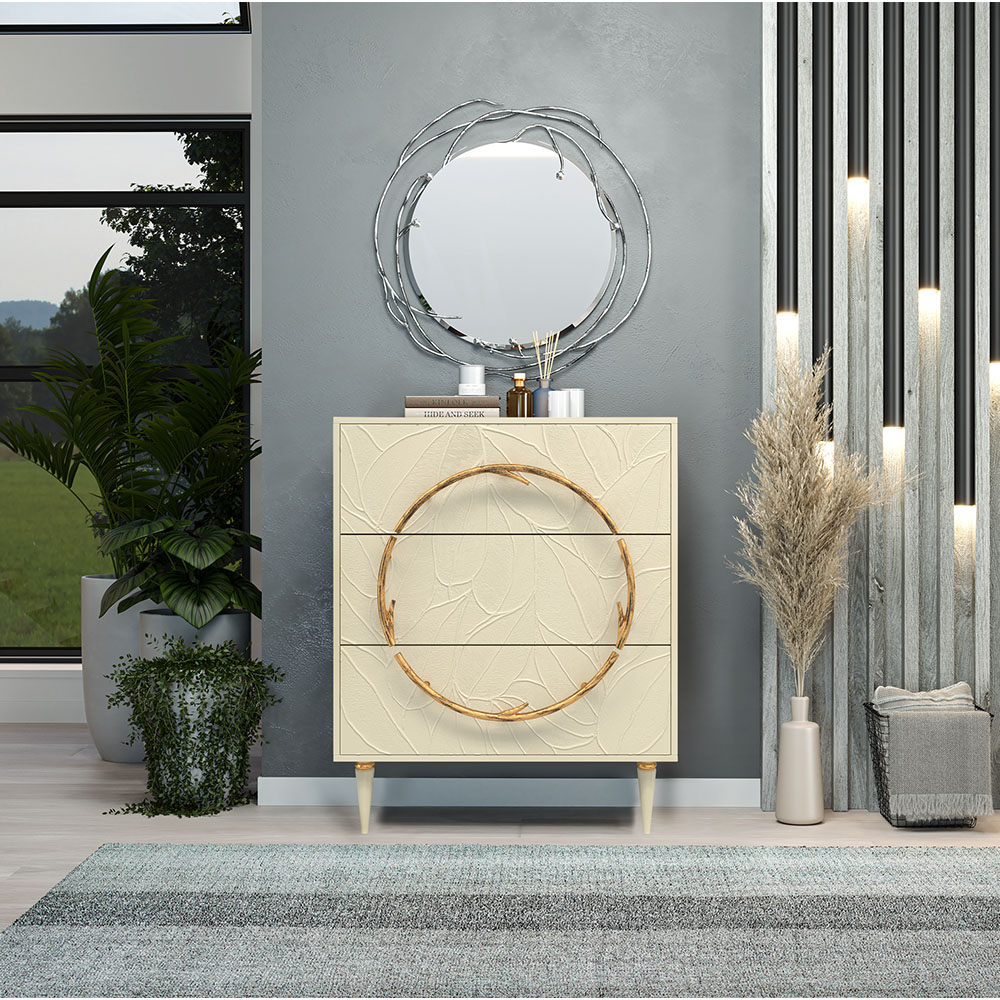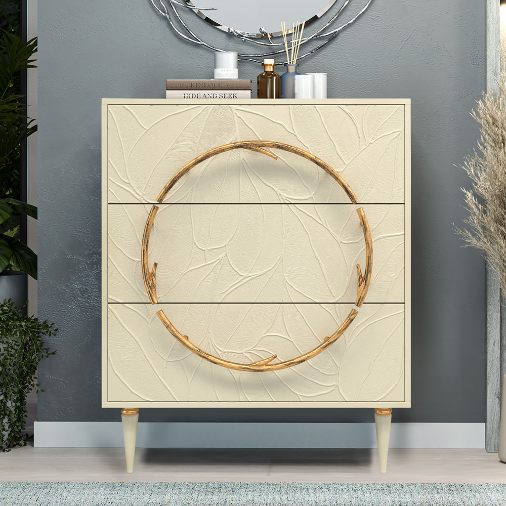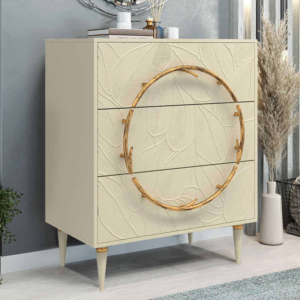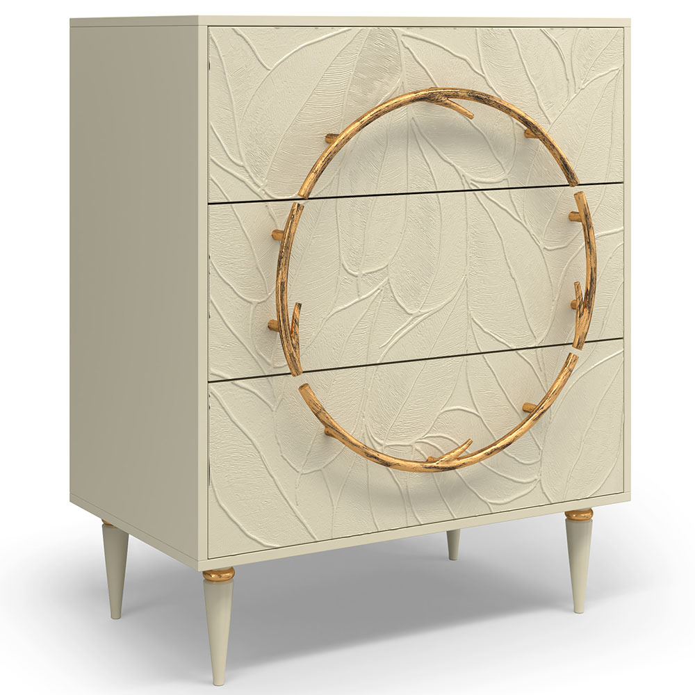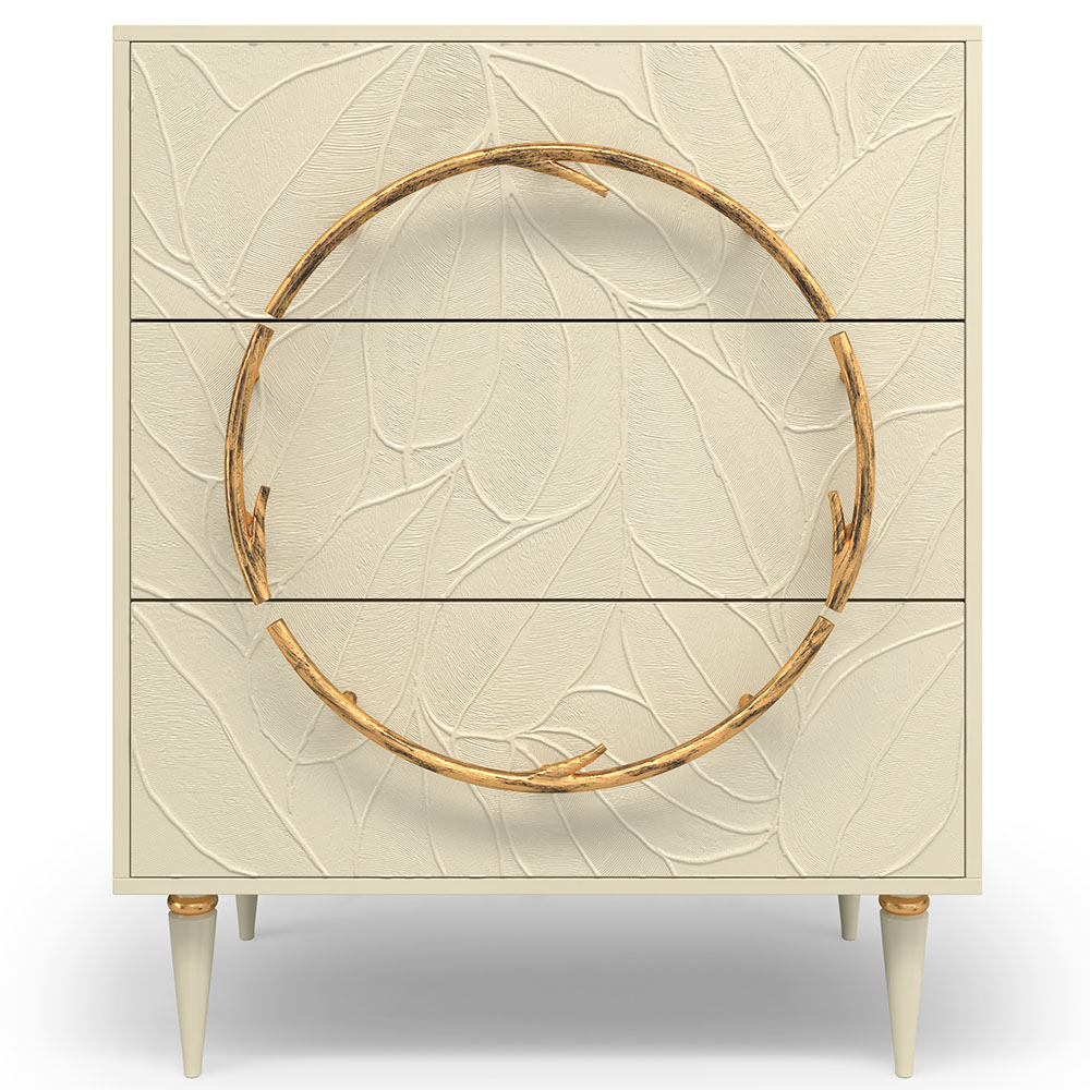 Комод изготовлен из высококачественного Мдф. Покрытие износостойкое, не требует особого ухода. Достаточно протереть поверхность слегка влажной тряпочкой. Ручка выполнена из кованой стали. Высота ножек - 19,8 см.