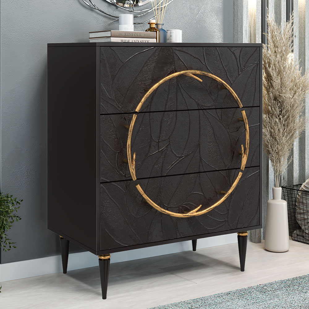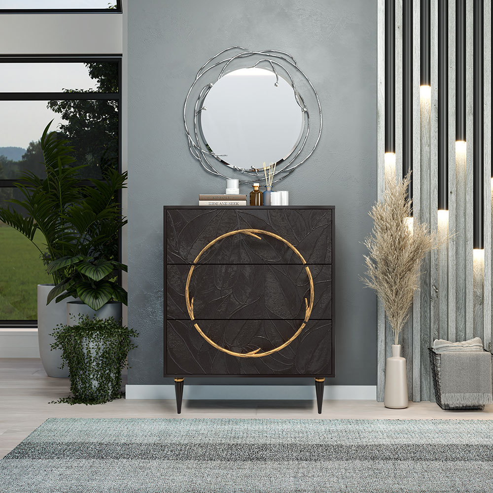Комод Арт Колор leaves Классик Голд с 3 ящиками Терпкий коричневый