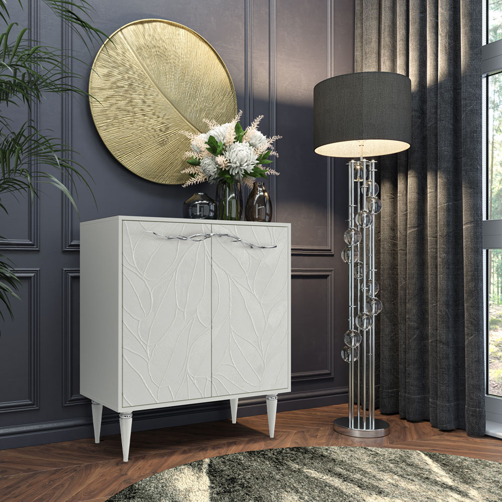 Комод Арт Колор leaves Классик Сильвер с 2 полками Белый опал