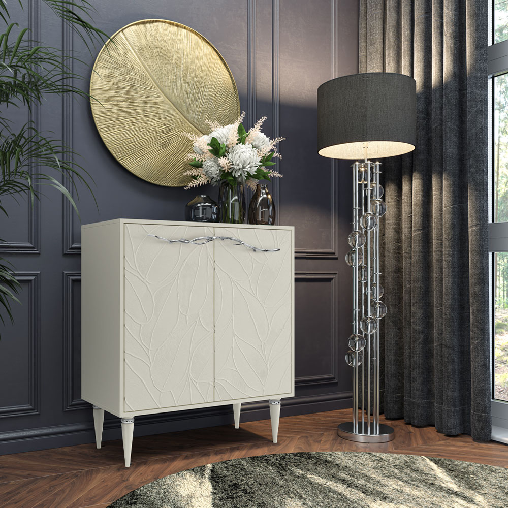 Комод Арт Колор с распашными дверцами и регулируемыми полками совмещает в себе функциональность и стильный дизайн.Комод максимально универсален и будет уместен в любой комнате: как самодостаточный элемент дизайна, как часть большой системы хранения, как единый функциональный ансамбль, например, с настенным зеркалом. По дизайну комод Арт гармонично сочетается с любой мебелью от скандинавского стиля Ikea (Икеа) до роскошного ар-деко, а благодаря широкой палитре цветов (12 оттенков), такой предмет мебели легко вписать в любой интерьер.Комод Арт Колор дарит вам максимальный простор для фантазии!Изюминка изделия: шикарная кованая ручка в форме ветви дерева – ручная работа кузнеца. Фасад может быть гладким, а также украшенным тропическими листьями. Корпус изделия выполнен из высококачественного мдф, ножки – из бука. Покрытие на ножках комода различается в зависимости от модели.Комод отлично подойдет в качестве подарка новоселам для создания уюта в доме!