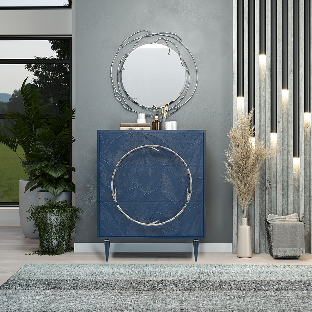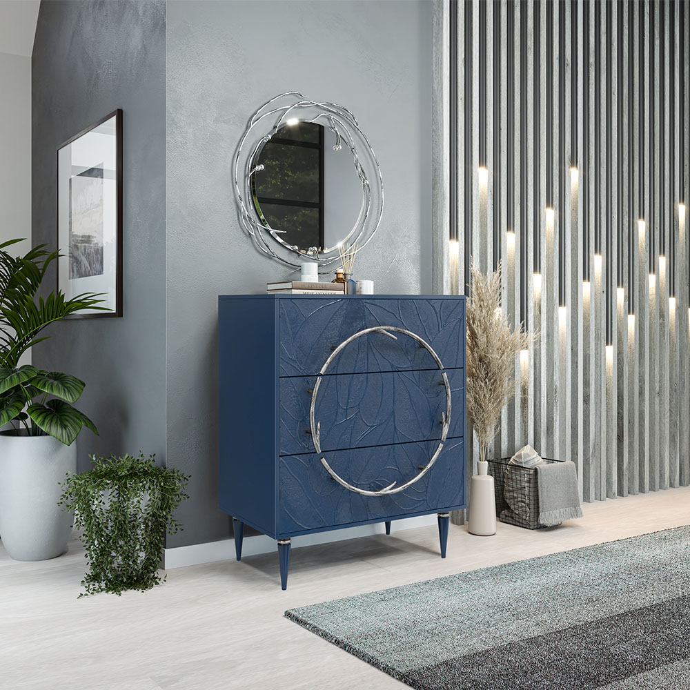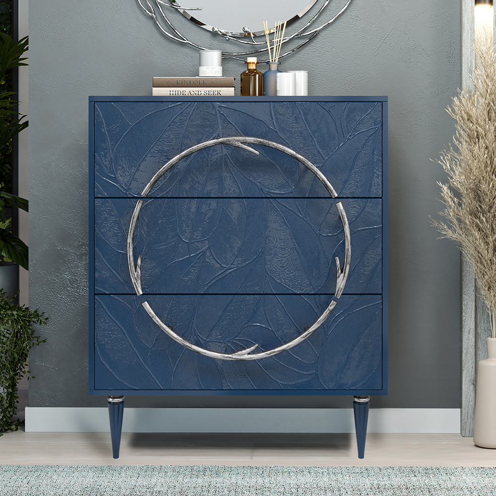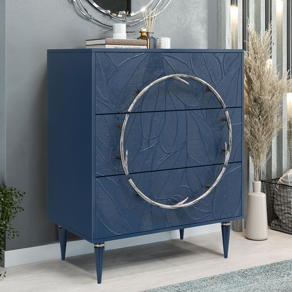 Комод Арт Колор leaves Классик Сильвер с 3 ящиками Королевский синий
