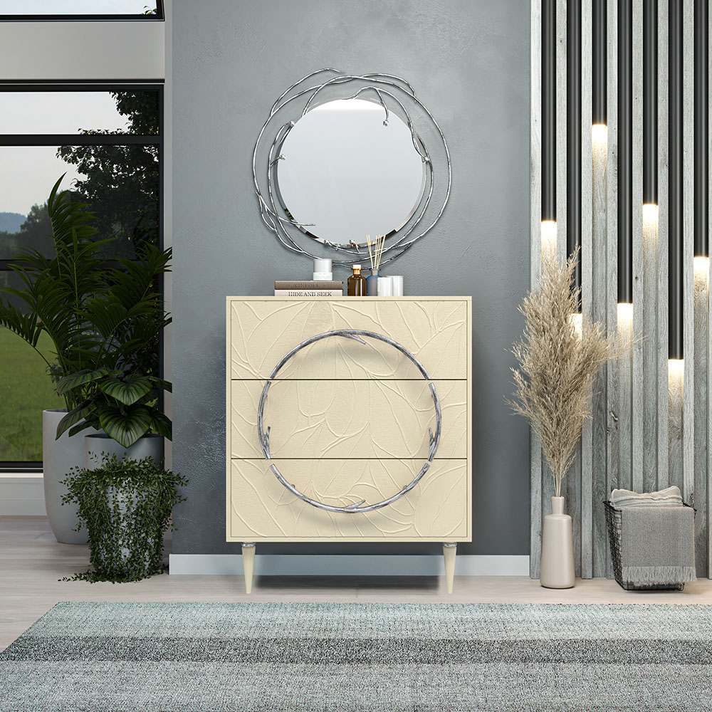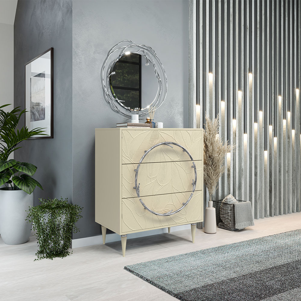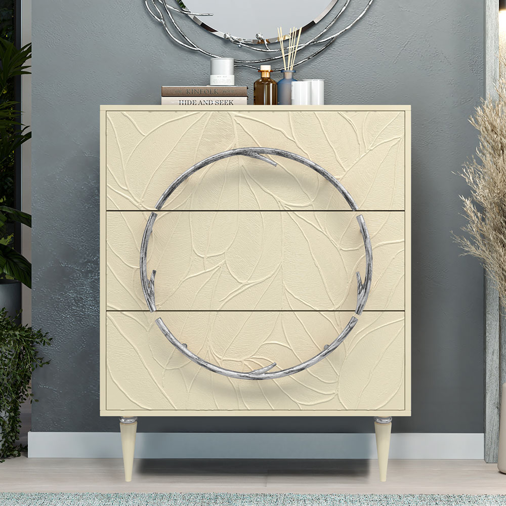 Комод Арт Колор leaves Классик Сильвер с 3 ящиками Серый шелк
