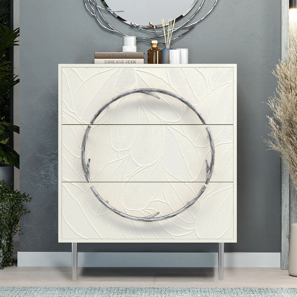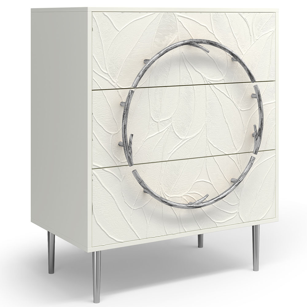 Комод Арт Колор leaves с 3-мя ящиками Стайл Сильвер Белый опал
