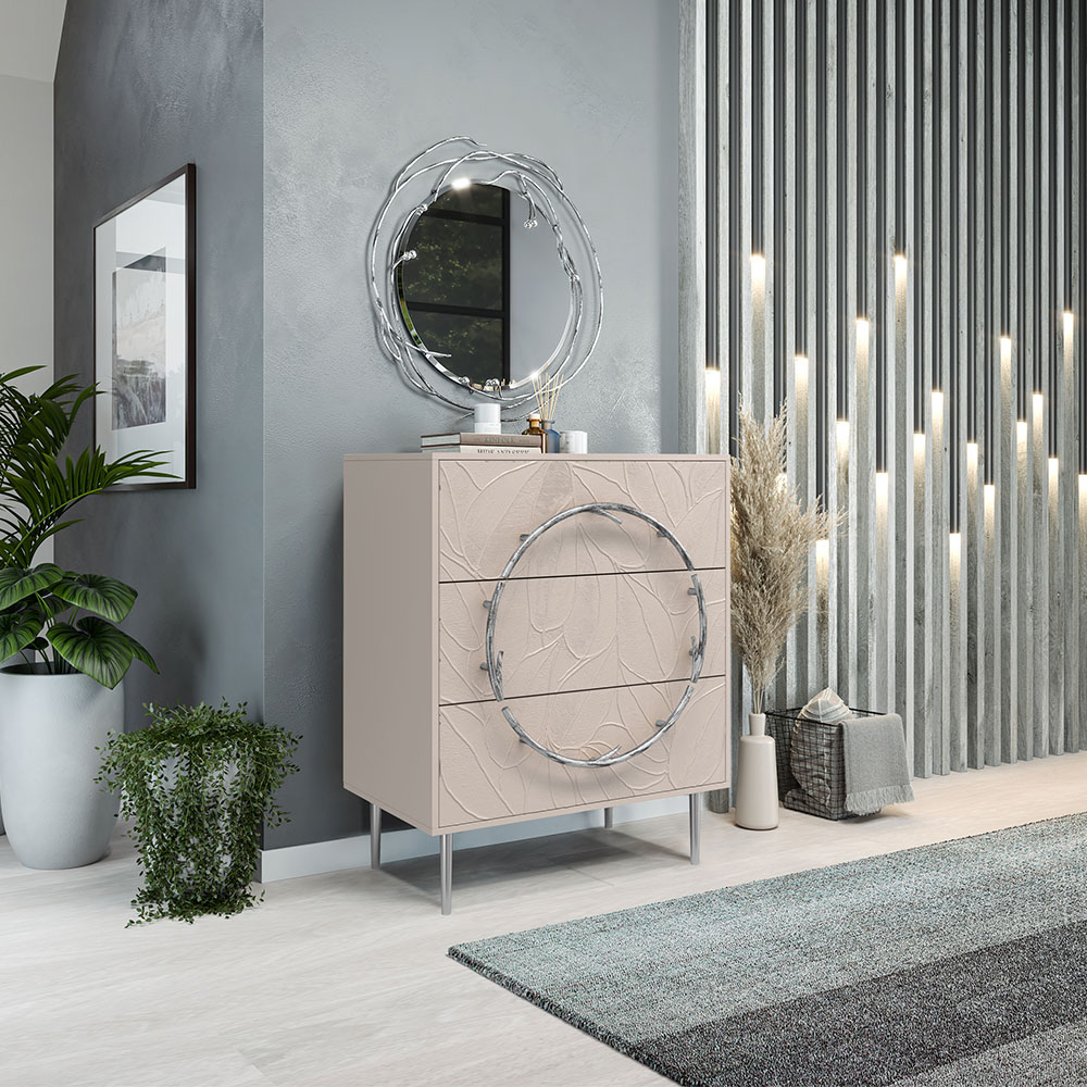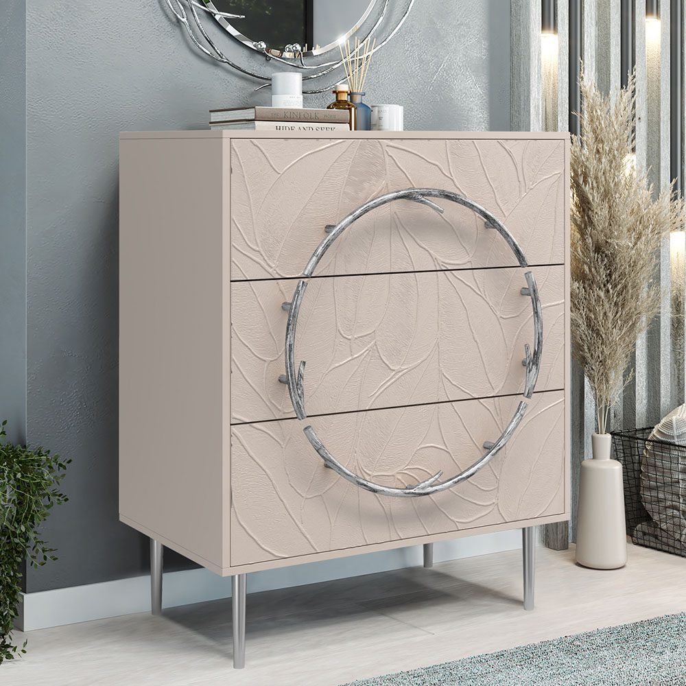Комод Арт Колор leaves с 3-мя ящиками Стайл Сильвер Серый агат