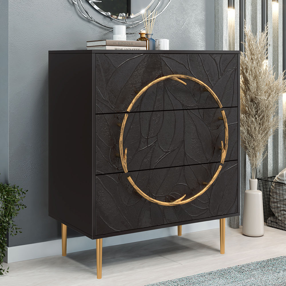 Комод Арт Колор leaves с 3-мя ящиками Стайл Сильвер Терпкий коричневый