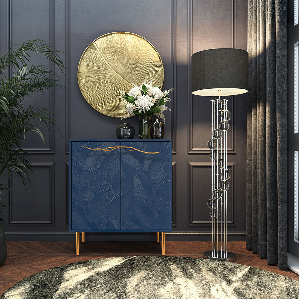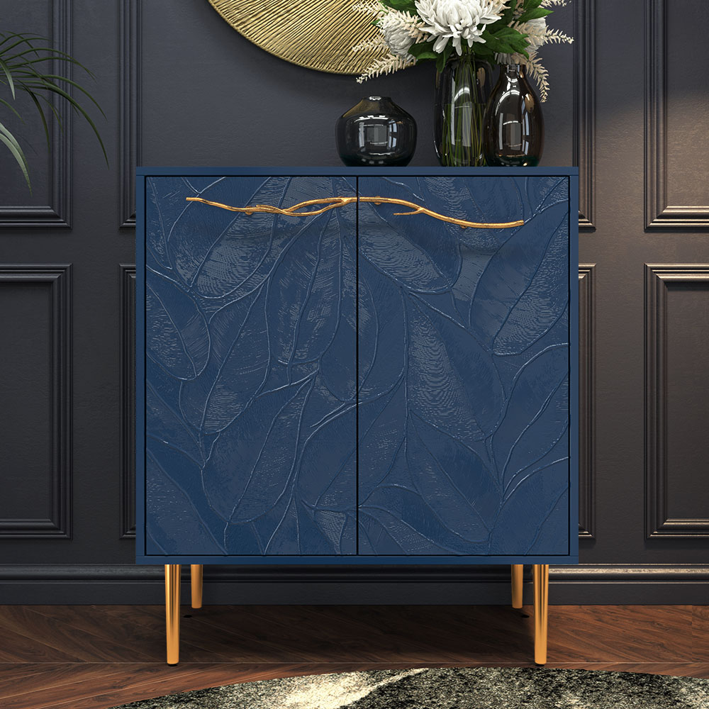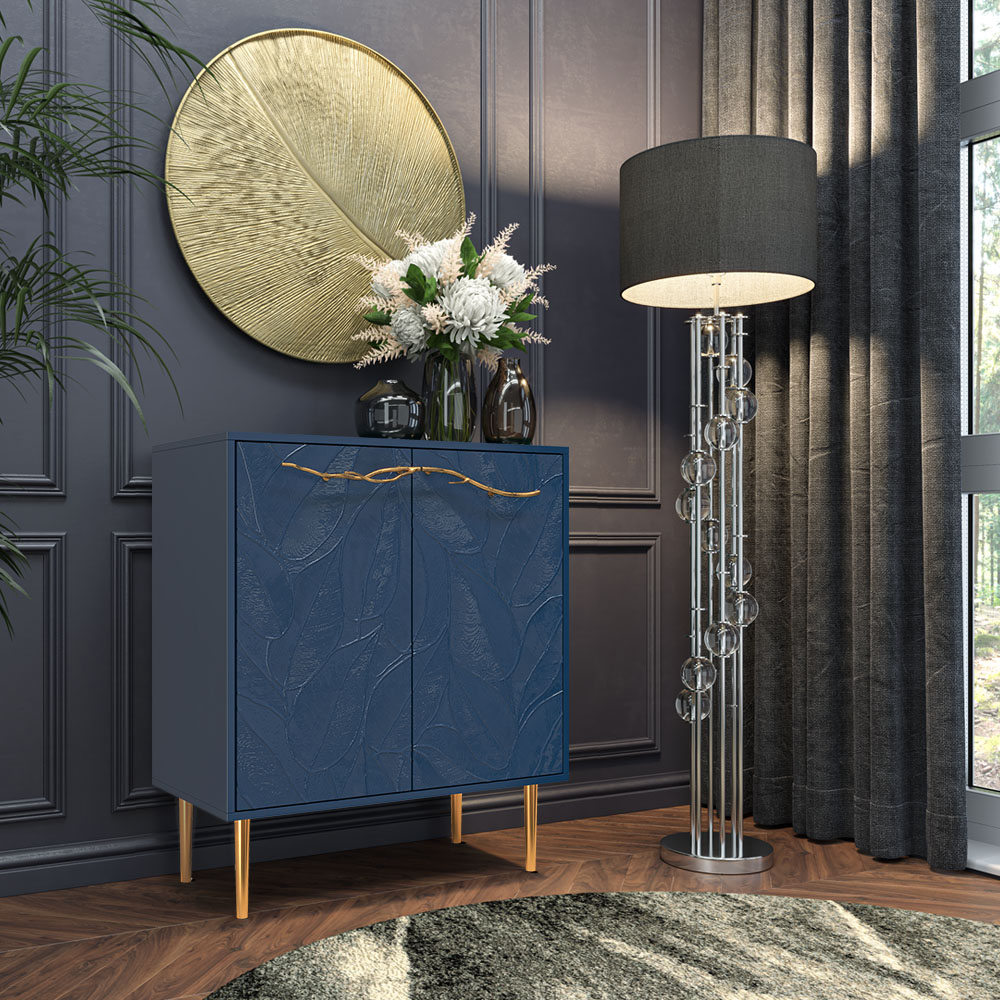 Комод Арт Колор leaves Стайл Голд с 2 полками Королевский синий