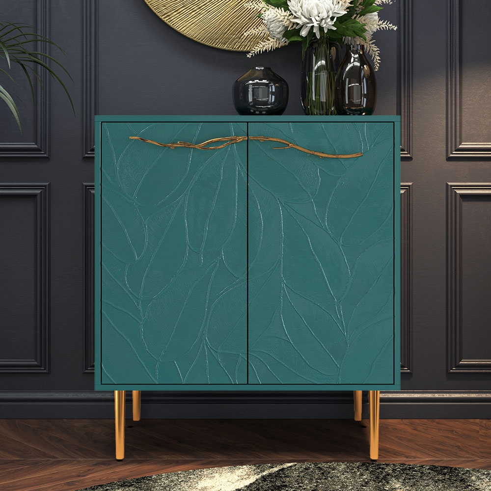 Комод Арт Колор leaves Стайл Голд с 2 полками Пастельно-синий