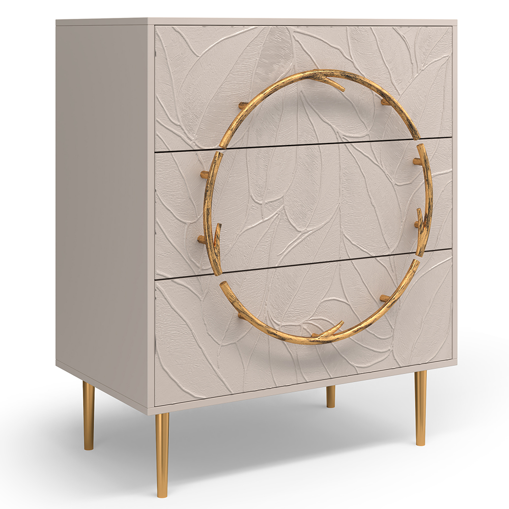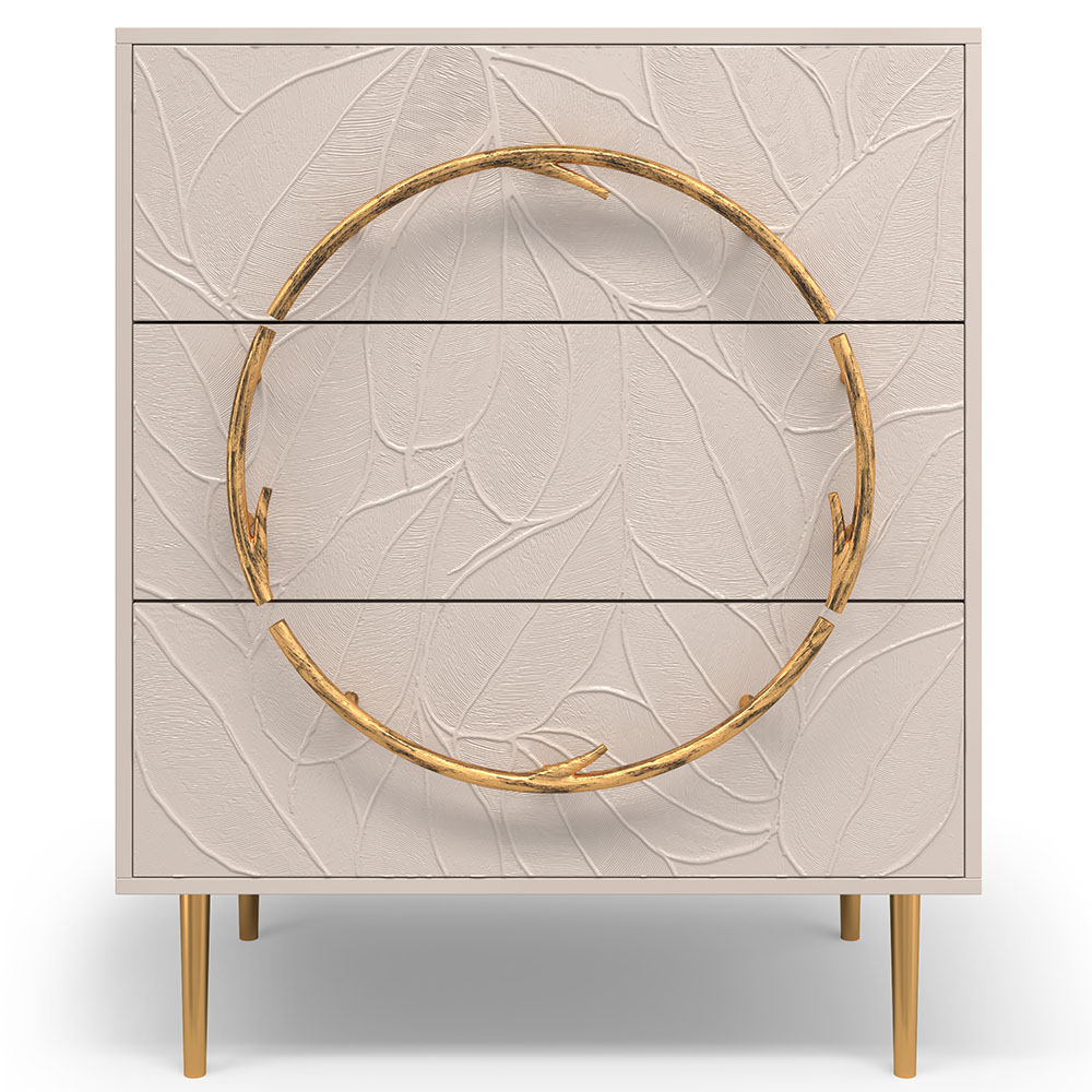 Комод изготовлен из высококачественного мдф. Покрытие износостойкое, не требует особого ухода. Достаточно протереть поверхность слегка влажной тряпочкой. Ручка выполнена из кованой стали. Высота ножек - 19,8 см.