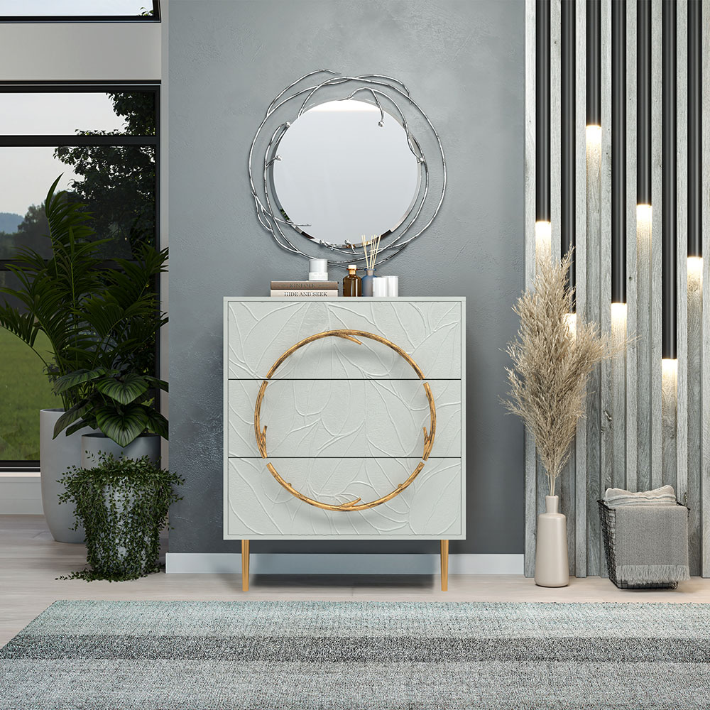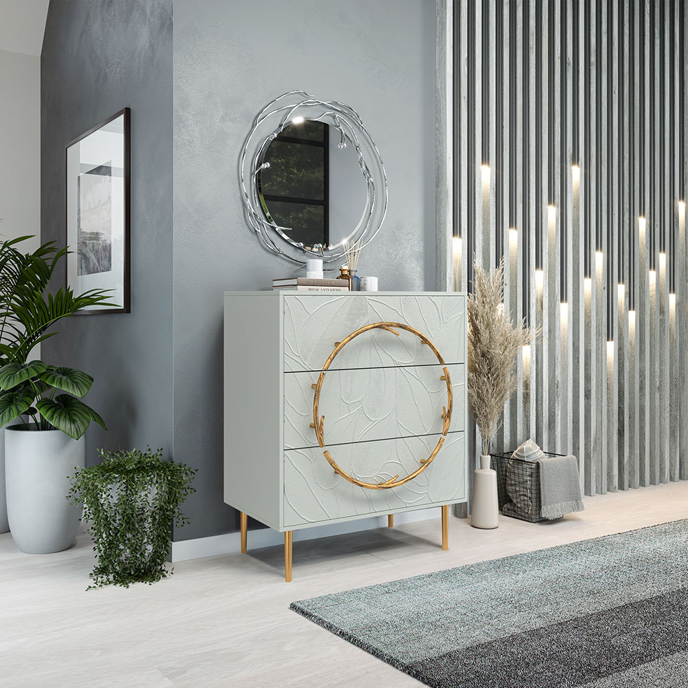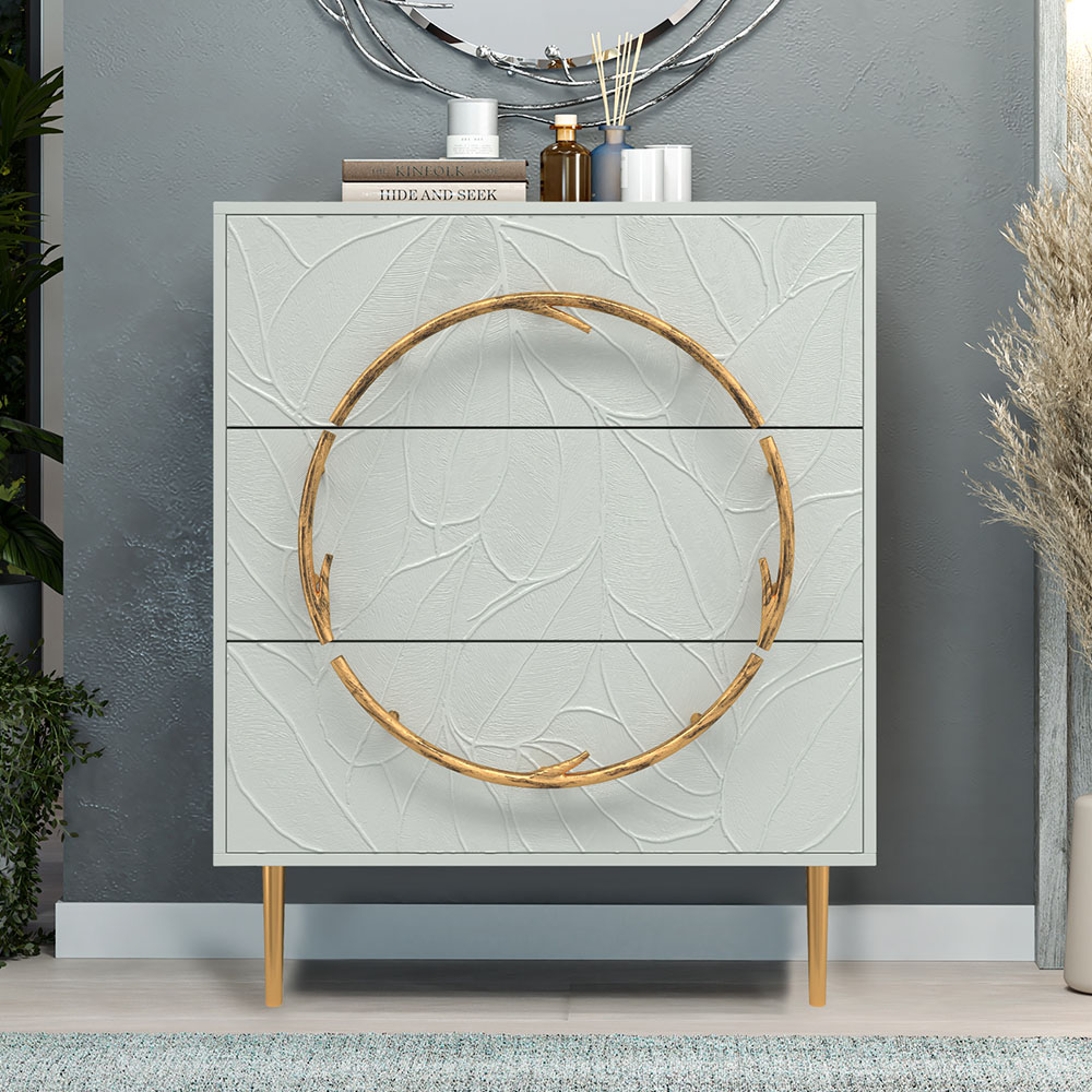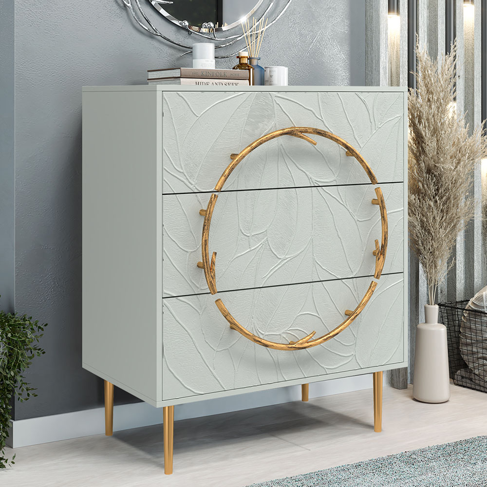Комод Арт Колор leaves Стайл Голд с 3 ящиками Серый дым