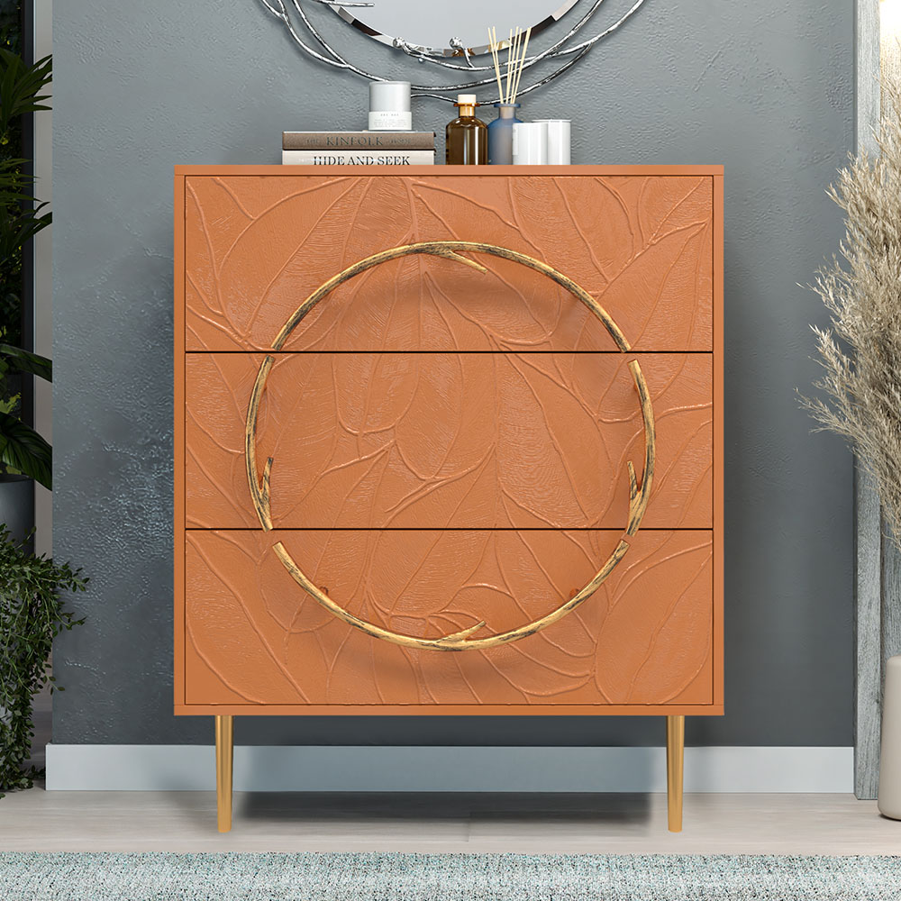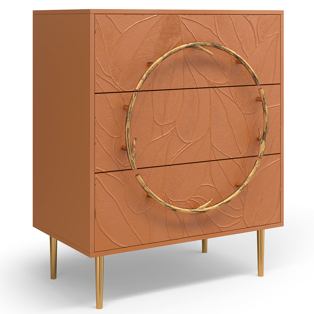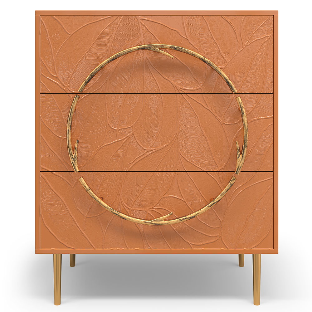Комод изготовлен из высококачественного МДФ. Покрытие износостойкое, не требует особого ухода. Достаточно протереть поверхность слегка влажной тряпочкой. Ручка выполнена из кованой стали. Высота ножек - 19,8 см.