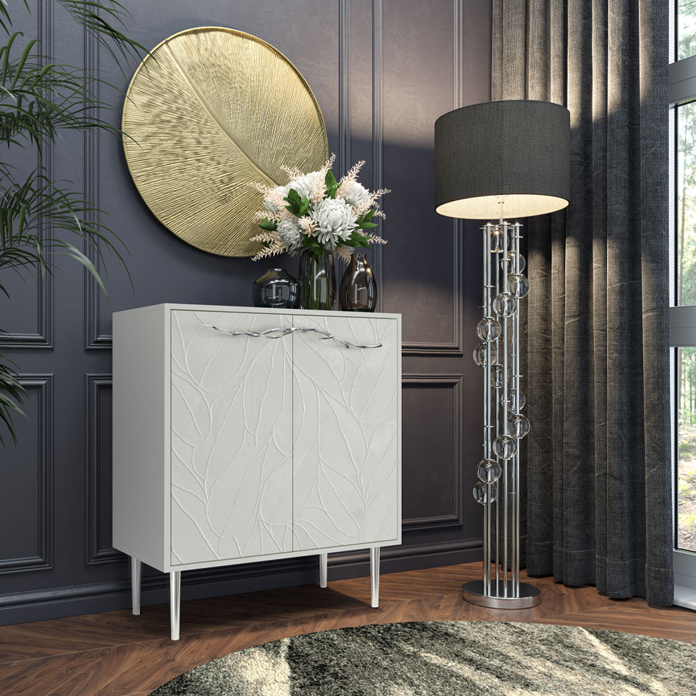 Комод Арт Колор leaves Стайл Сильвер с 2 полками Белый опал