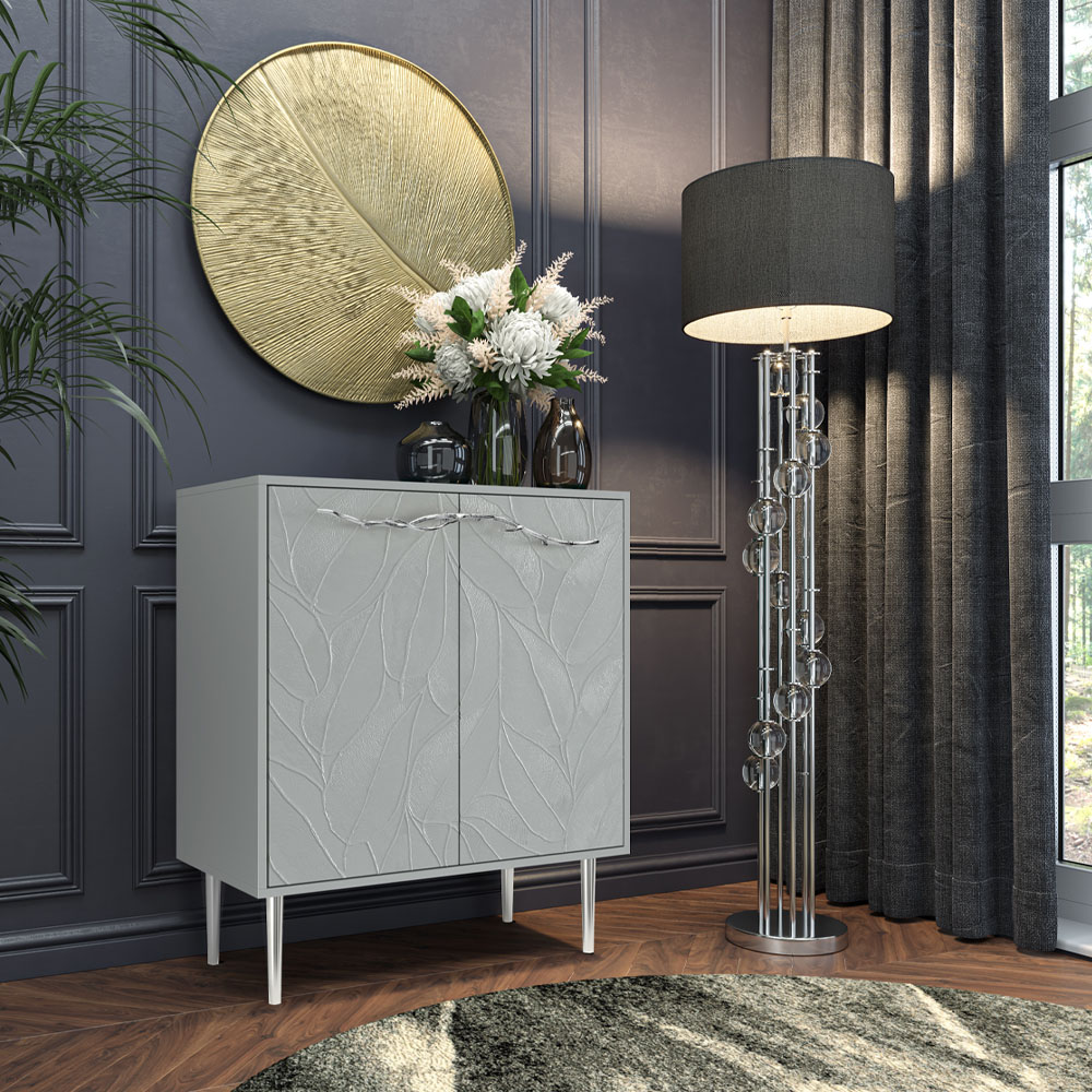 Комод Арт Колор leaves Стайл Сильвер с 2 полками Серый дым