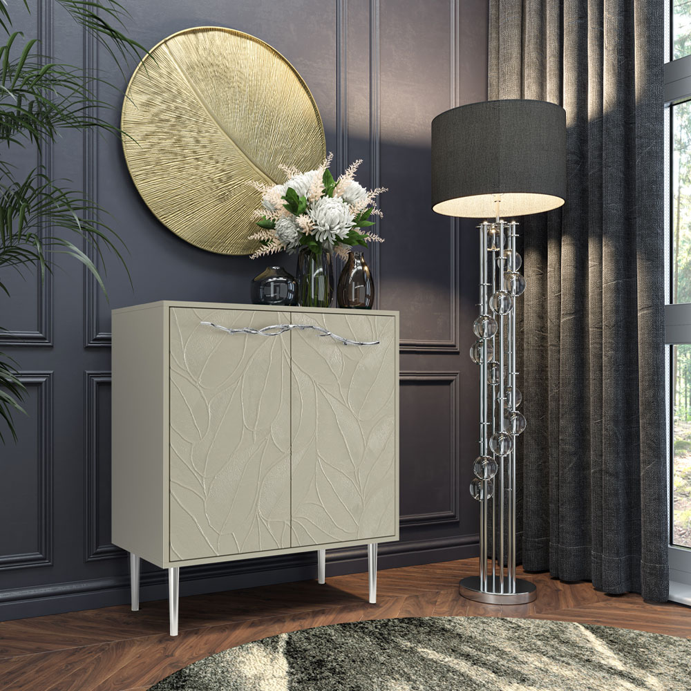 Комод Арт Колор leaves Стайл Сильвер с 2 полками Серый шелк