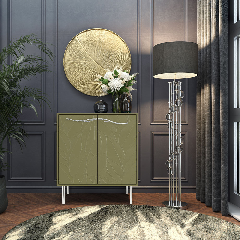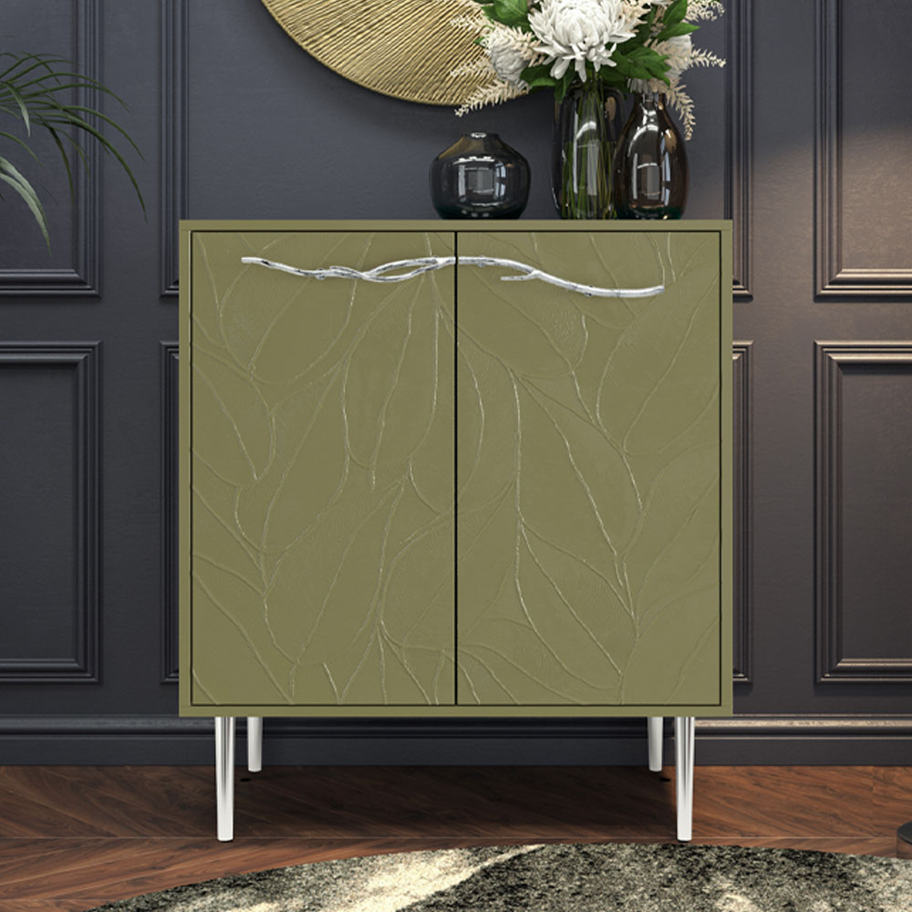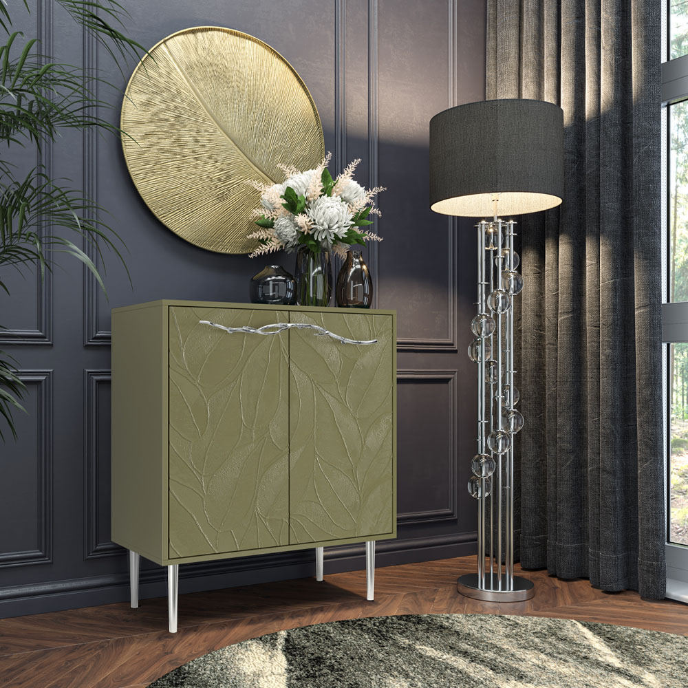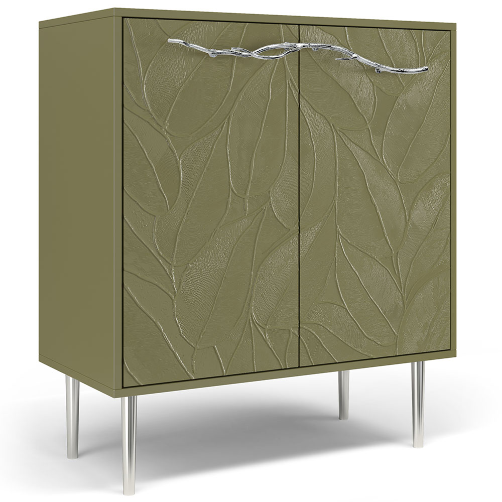 Комод Арт Колор leaves Стайл Сильвер с 2 полками Зеленая олива