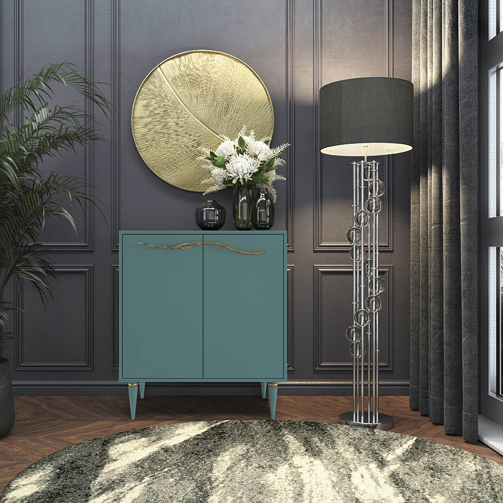 Комод Арт Колор matte Классик Голд с 2 полками Пастельно-синий матовый
