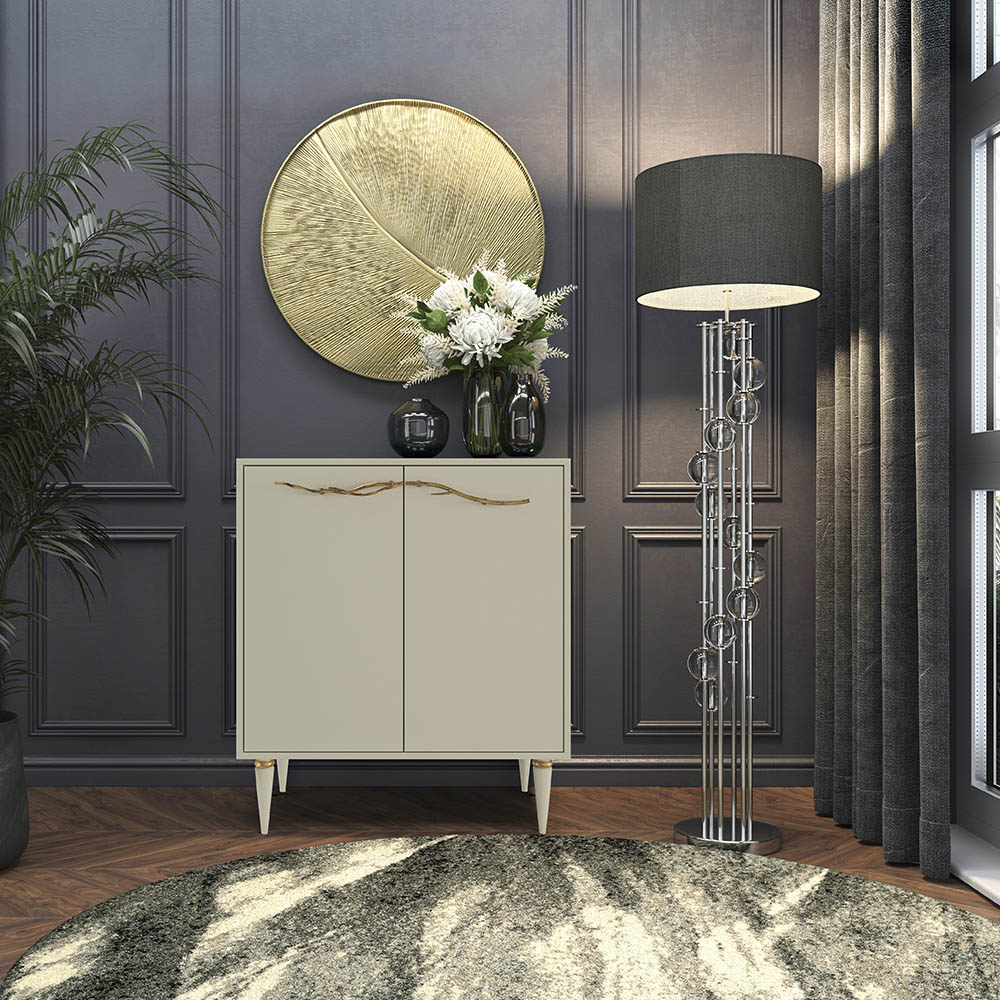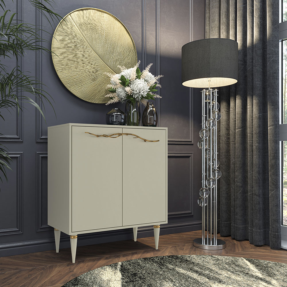 Комод Арт Колор matte Классик Голд с 2 полками Серый шелк матовый