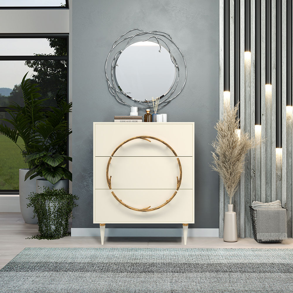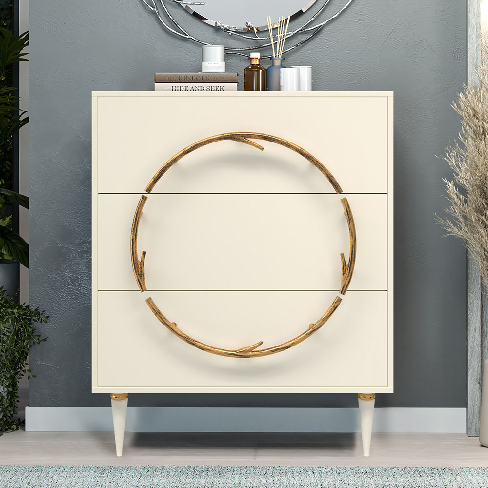 Комод Арт Колор matte Классик Голд с 3 ящиками Кремовый белый матовый