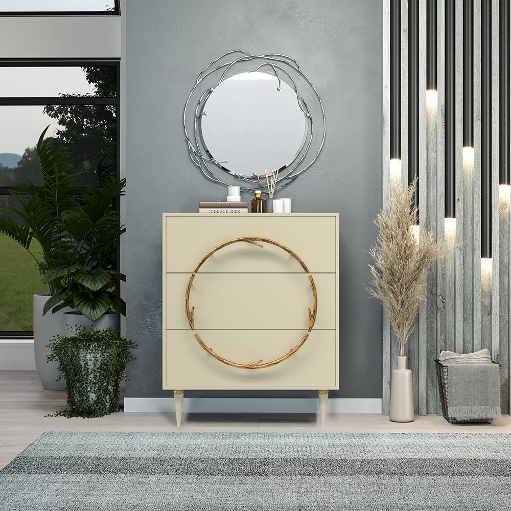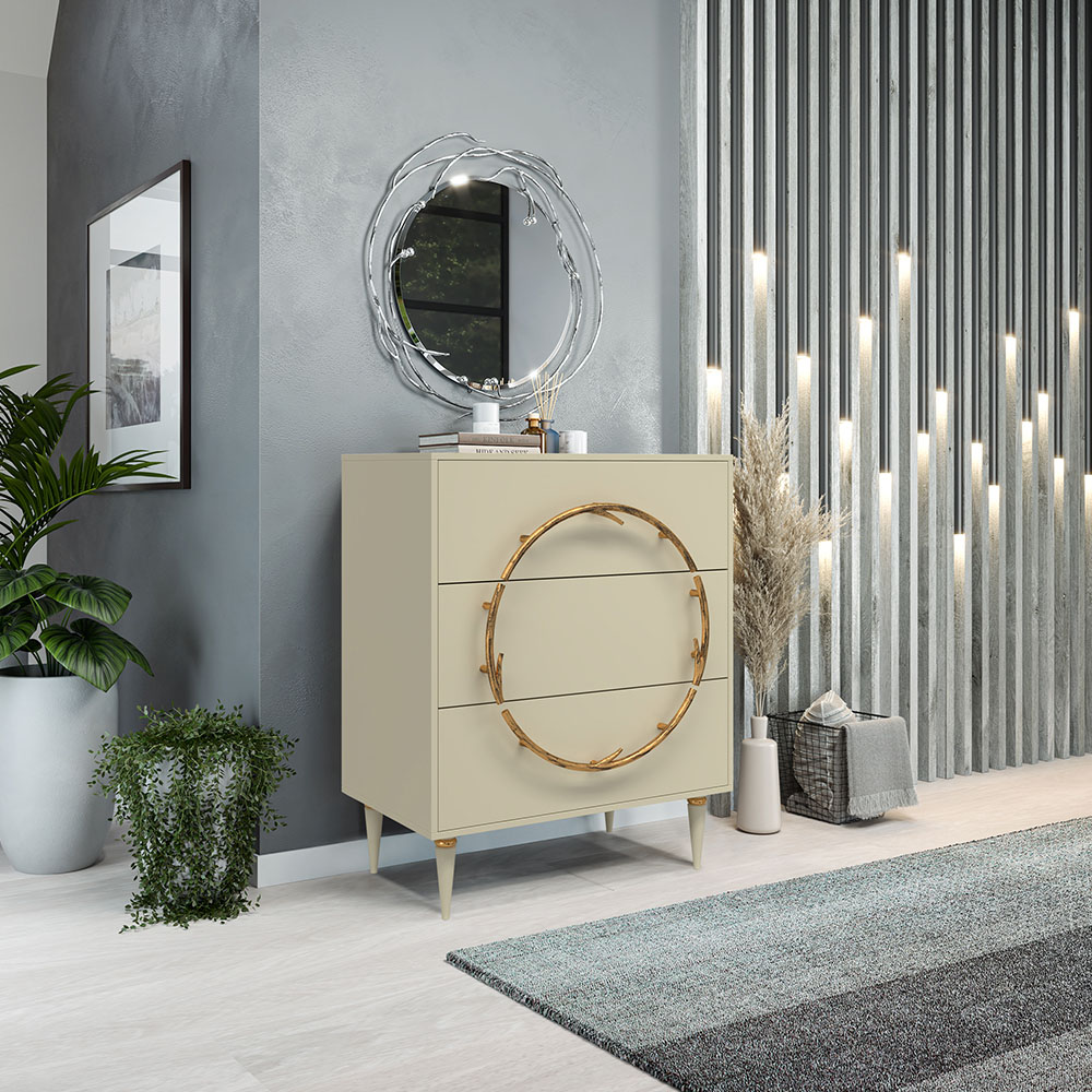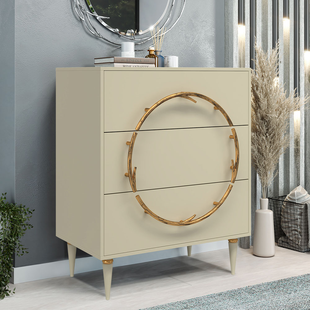 Комод Арт Колор matte Классик Голд с 3 ящиками Серый шелк матовый