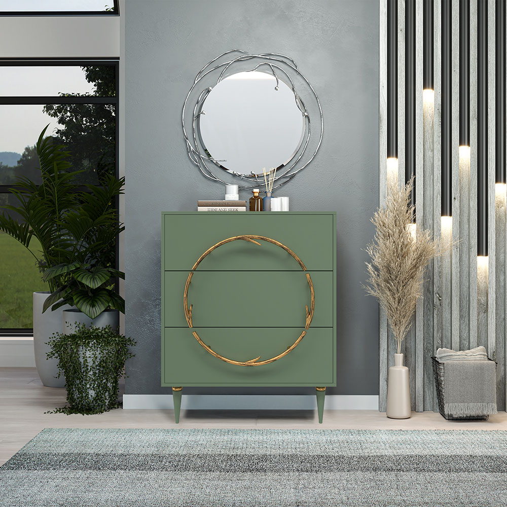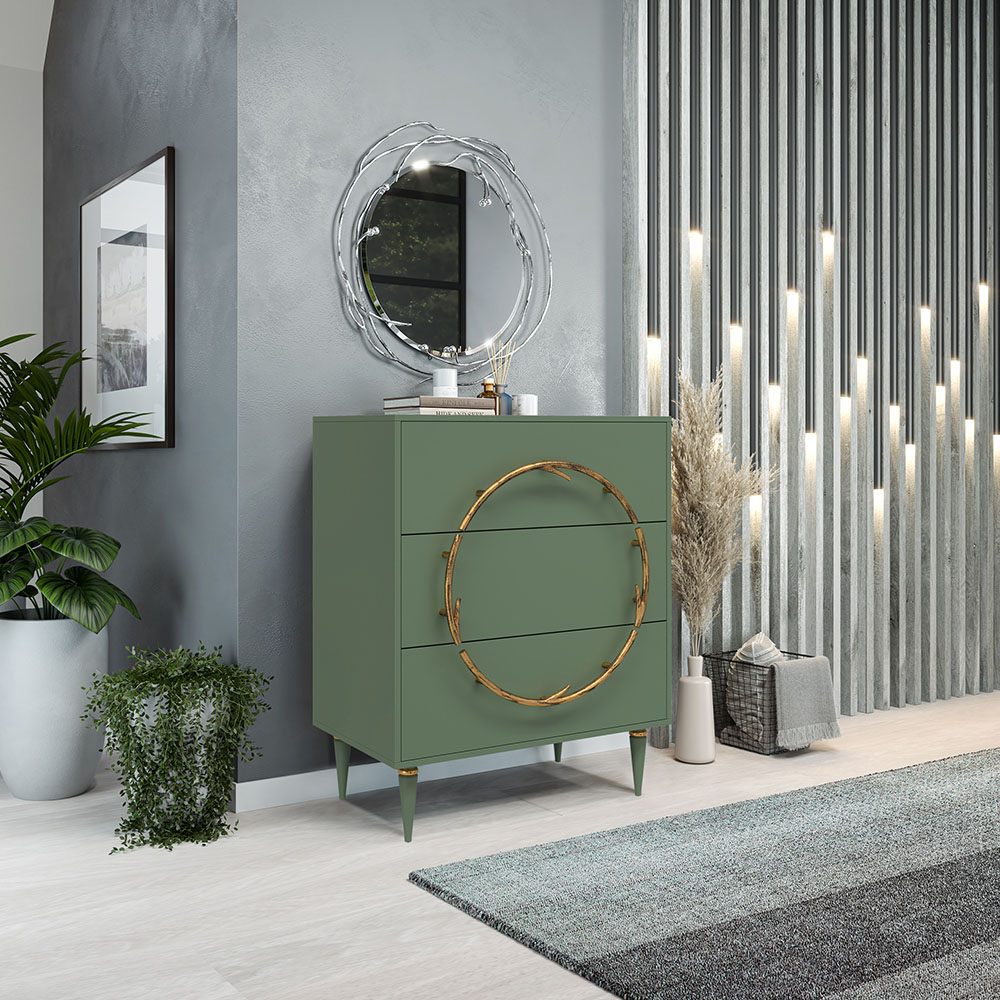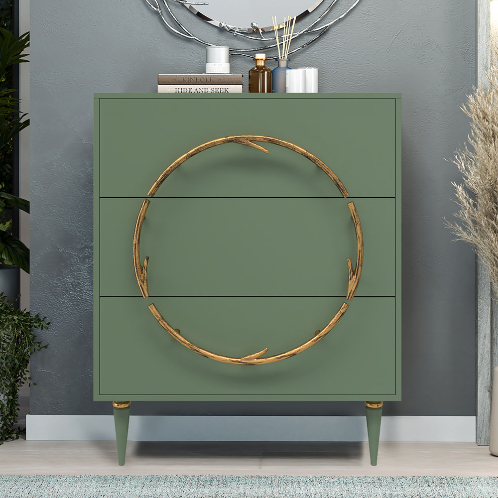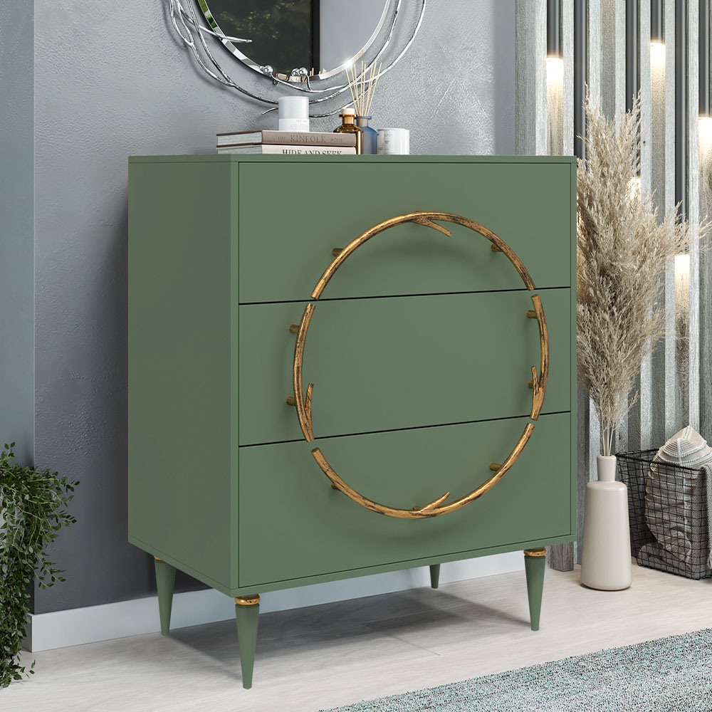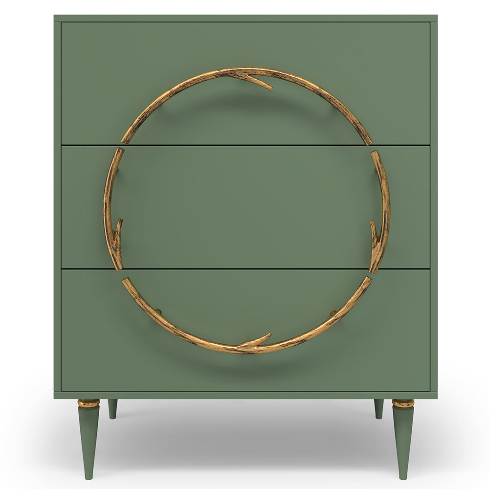 Комод Арт Колор matte Классик Голд с 3 ящиками Зеленый нефрит матовый