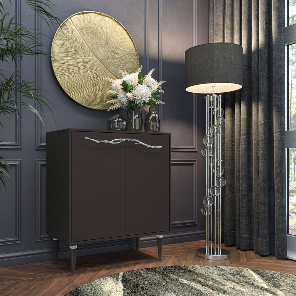 Комод Арт Колор с распашными дверцами и регулируемыми полками совмещает в себе функциональность и стильный дизайн.Комод максимально универсален и будет уместен в любой комнате: как самодостаточный элемент дизайна, как часть большой системы хранения, как единый функциональный ансамбль, например, с настенным зеркалом. По дизайну комод Арт гармонично сочетается с любой мебелью от скандинавского стиля IKEA (Икеа) до роскошного ар-деко, а благодаря широкой палитре цветов (12 оттенков), такой предмет мебели легко вписать в любой интерьер.Комод Арт Колор дарит вам максимальный простор для фантазии!Изюминка изделия: шикарная кованая ручка в форме ветви дерева – ручная работа кузнеца. Фасад может быть гладким, а также украшенным тропическими листьями. Корпус изделия выполнен из высококачественного МДФ, ножки – из бука. Покрытие на ножках комода различается в зависимости от модели.Комод отлично подойдет в качестве подарка новоселам для создания уюта в доме!