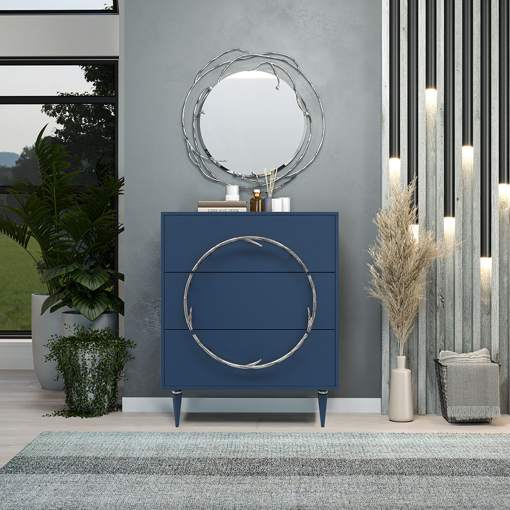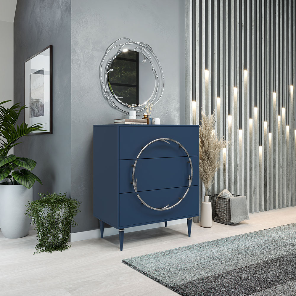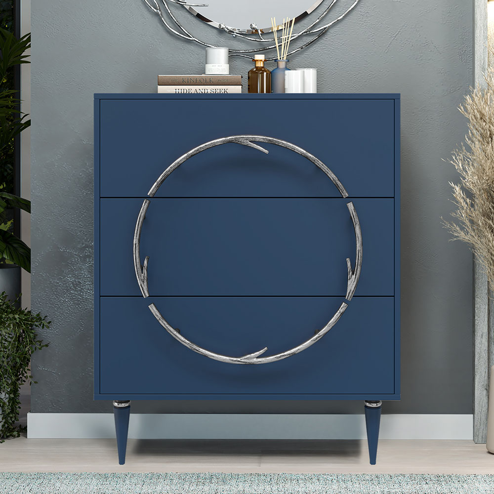 Комод Арт Колор matte Классик Сильвер с 3 ящиками Королевский синий матовый