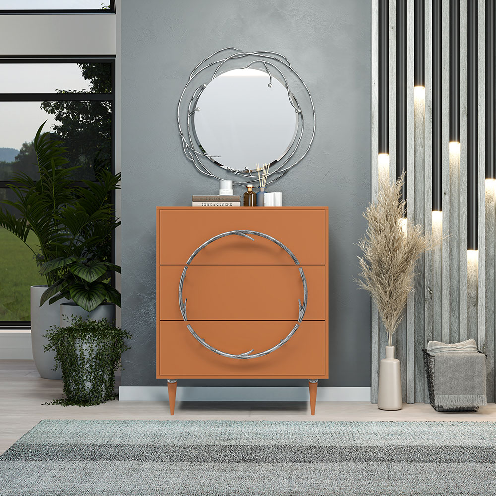Комод Арт Колор matte Классик Сильвер с 3 ящиками Томленый оранжевый матовый