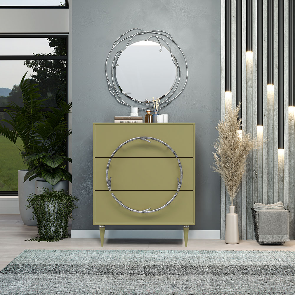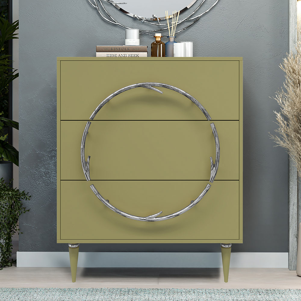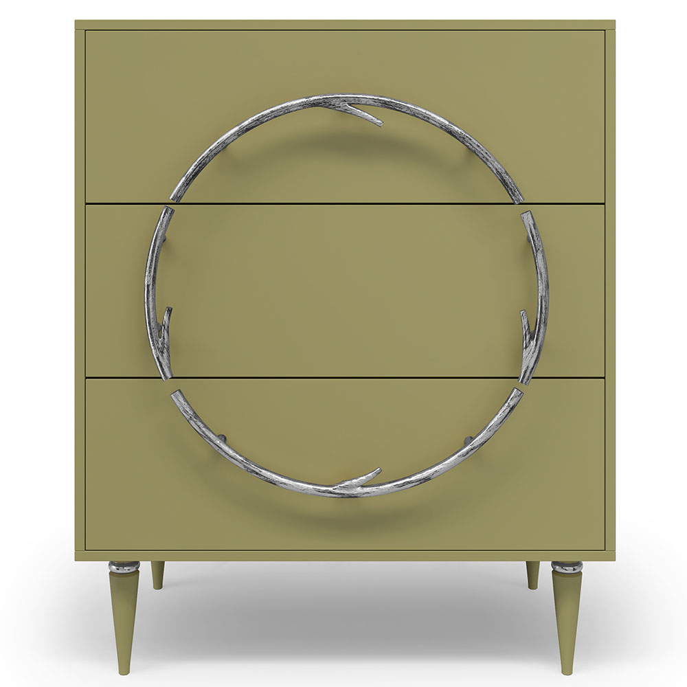 Комод Арт Колор matte Классик Сильвер с 3 ящиками Зеленая олива матовая