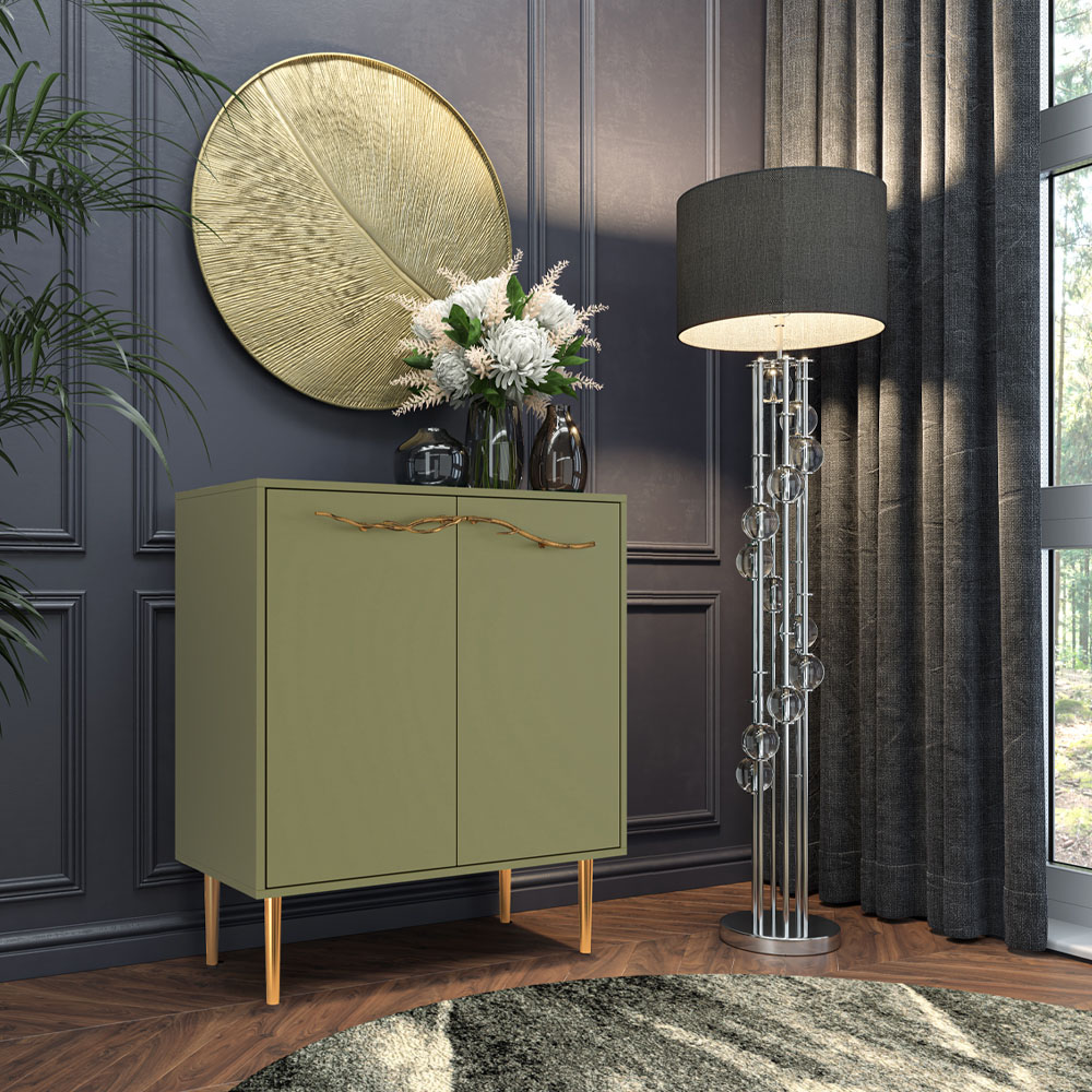Комод Арт Колор matte Стайл Голд с 2 полками Зеленая олива матовый