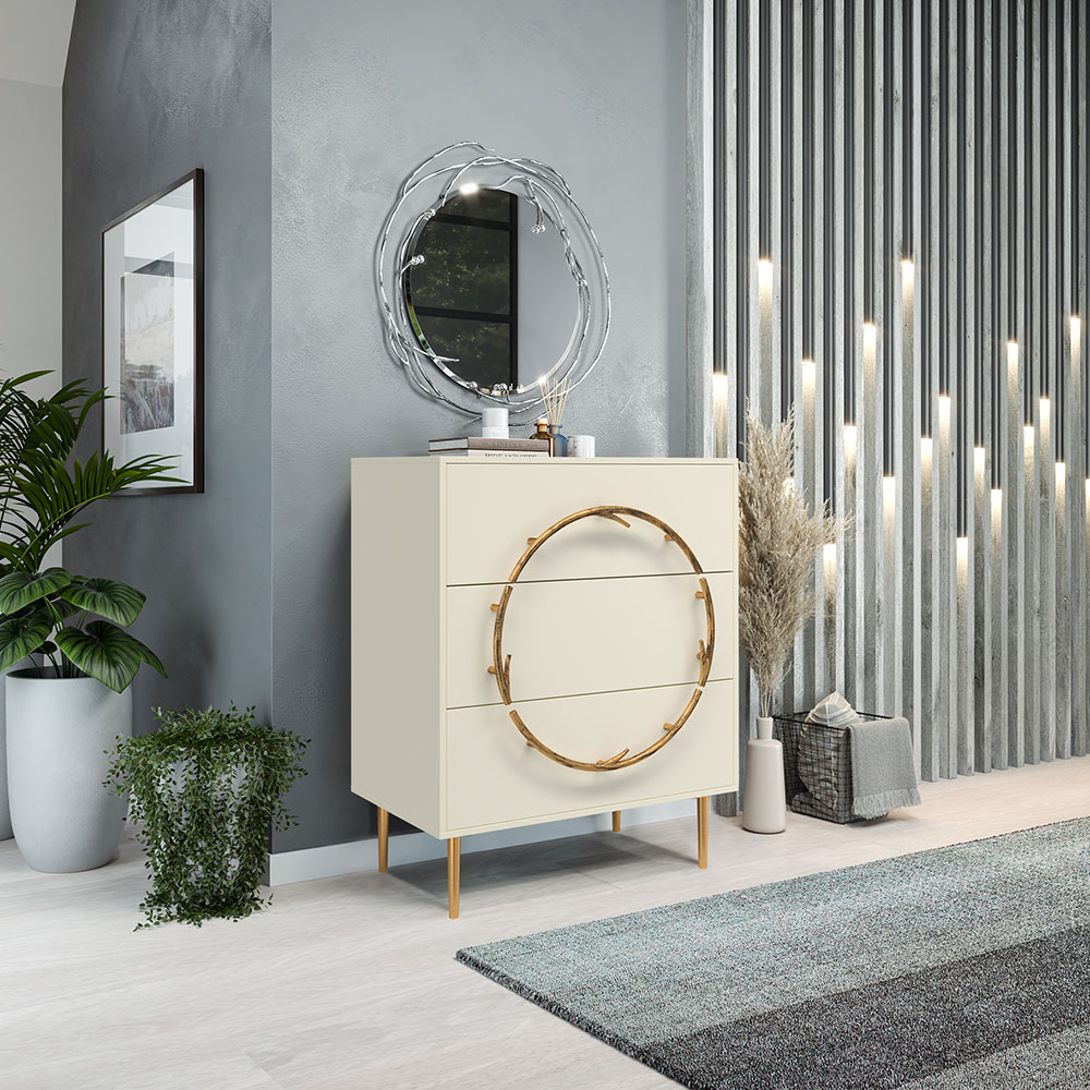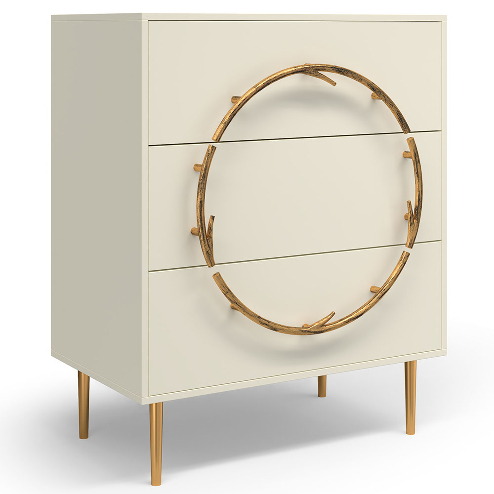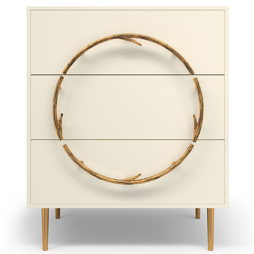 Комод Арт Колор matte Стайл Голд с 3 ящиками Кремовый белый матовый