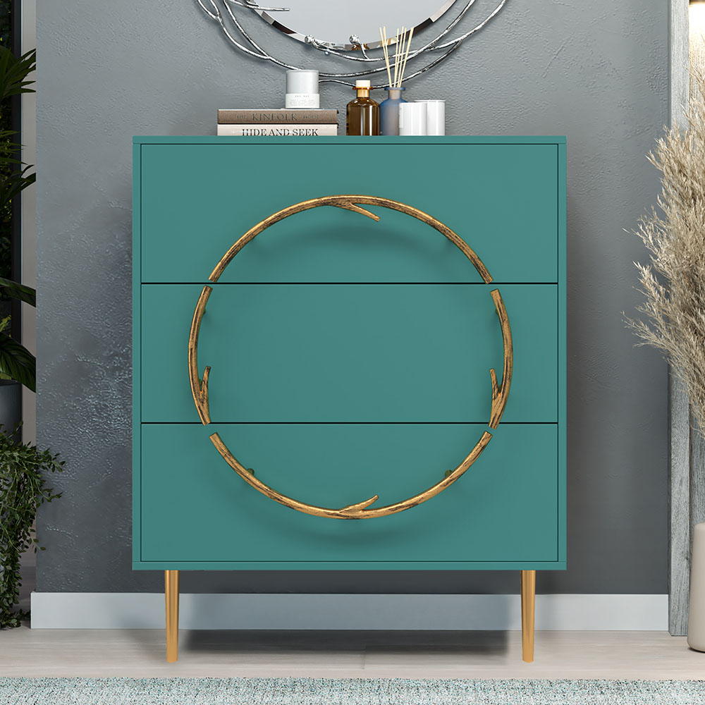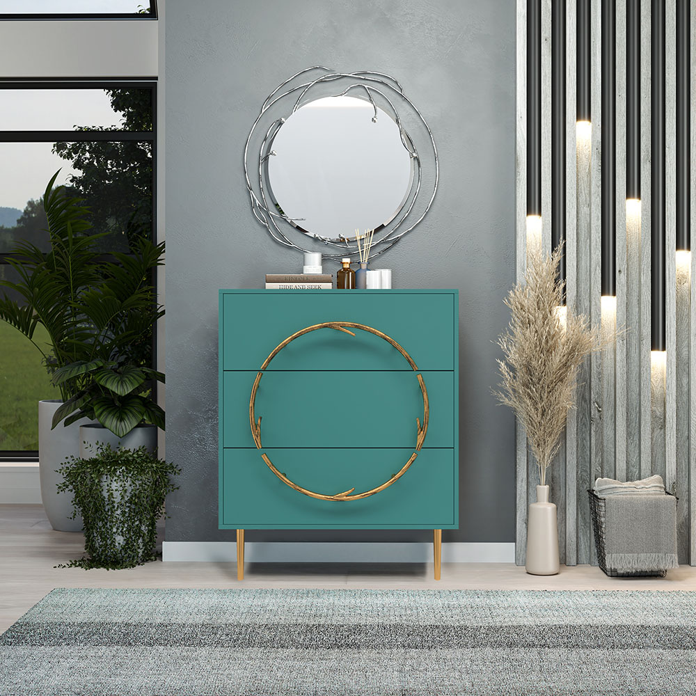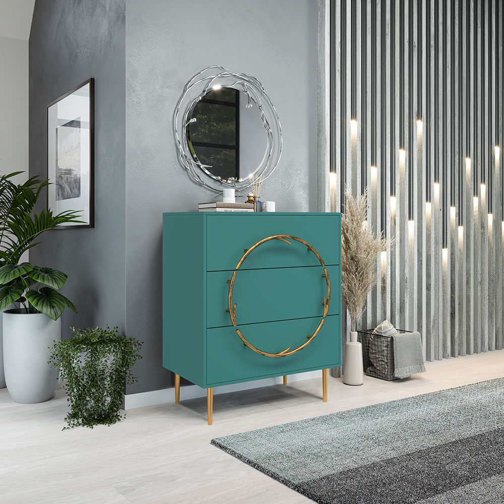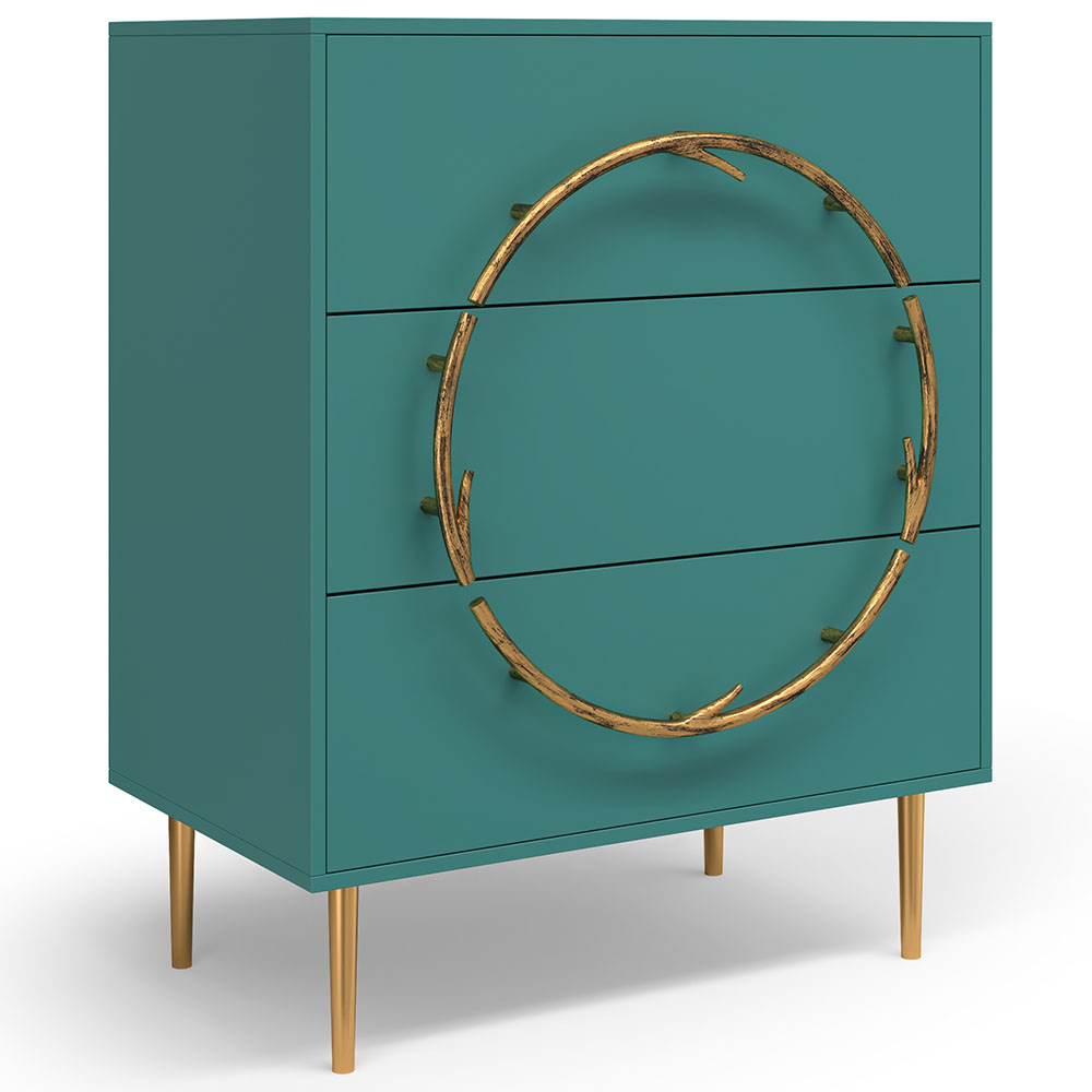 Комод Арт Колор matte Стайл Голд с 3 ящиками Пастельно-синий матовый