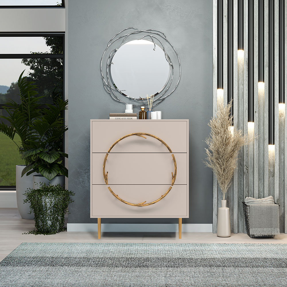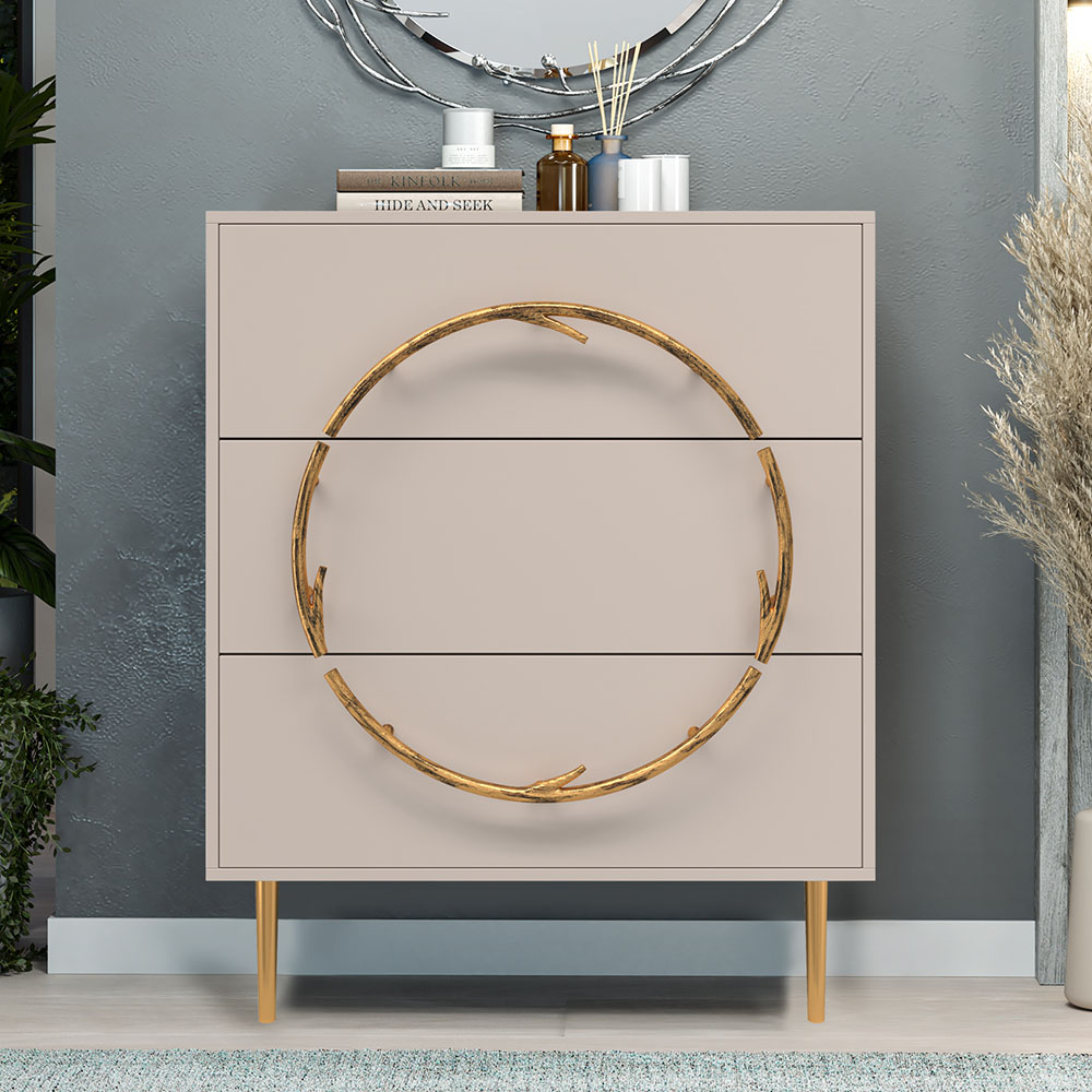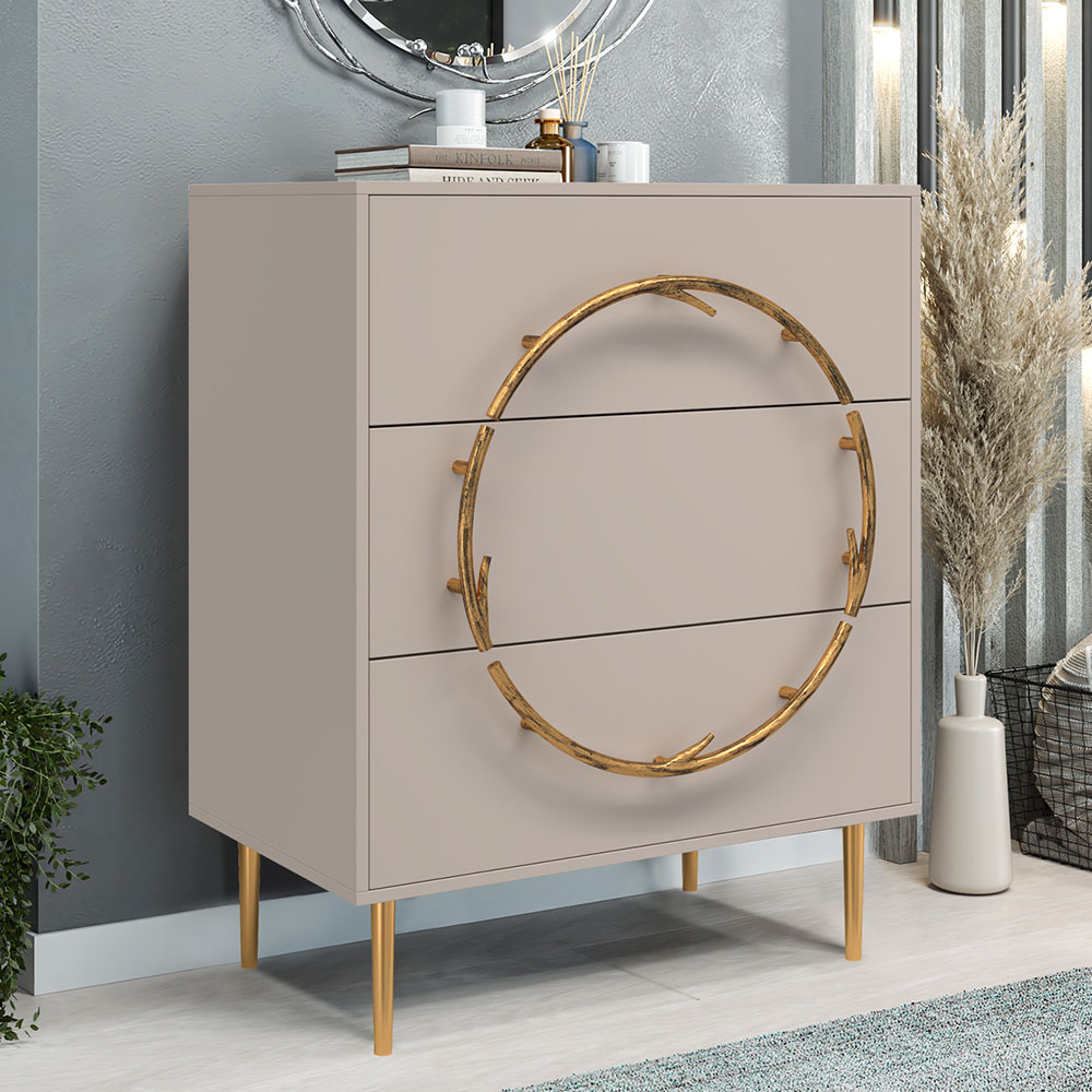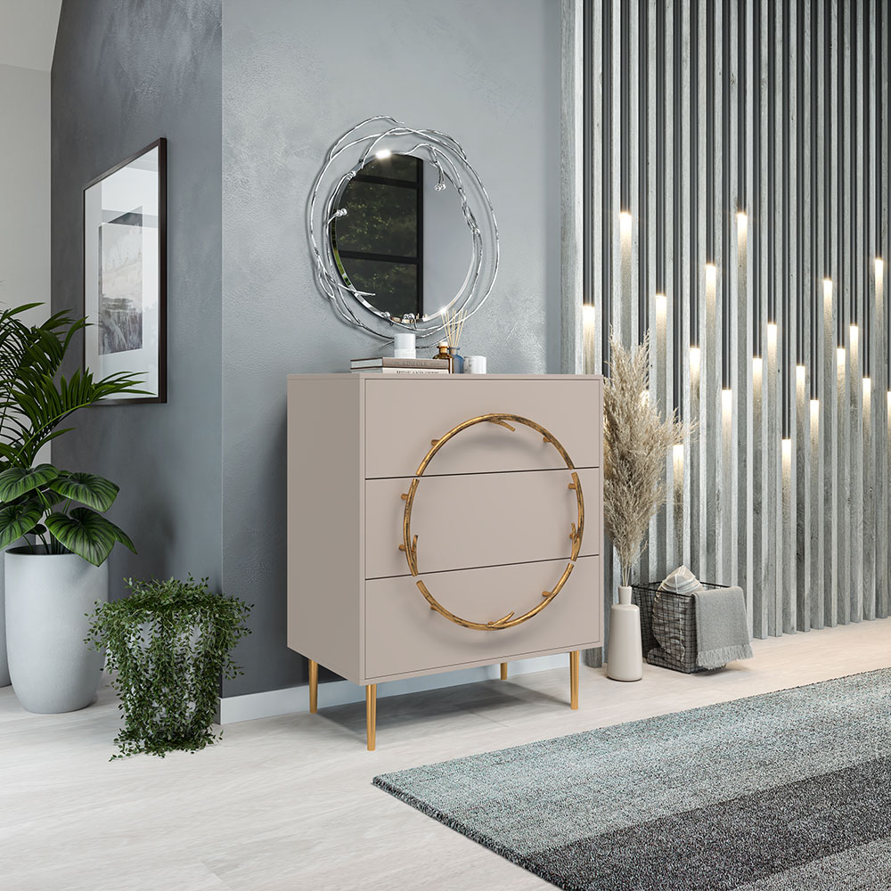 Комод Арт Колор matte Стайл Голд с 3 ящиками Серый агат матовый