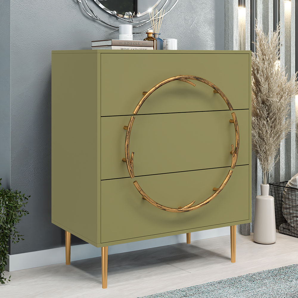 Комод изготовлен из высококачественного мдф. Покрытие износостойкое, не требует особого ухода. Достаточно протереть поверхность слегка влажной тряпочкой. Ручка выполнена из кованой стали. Высота ножек - 19,8 см.