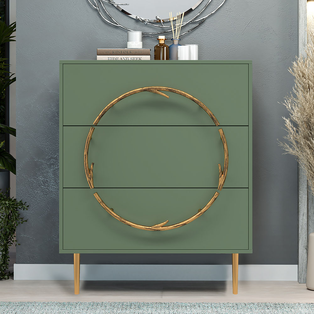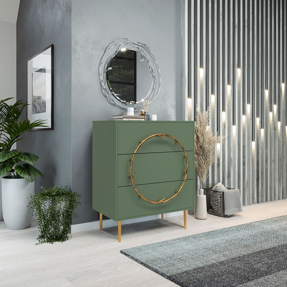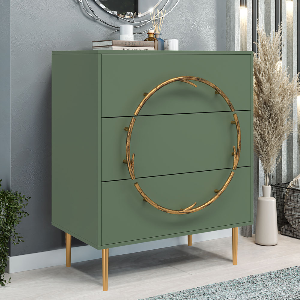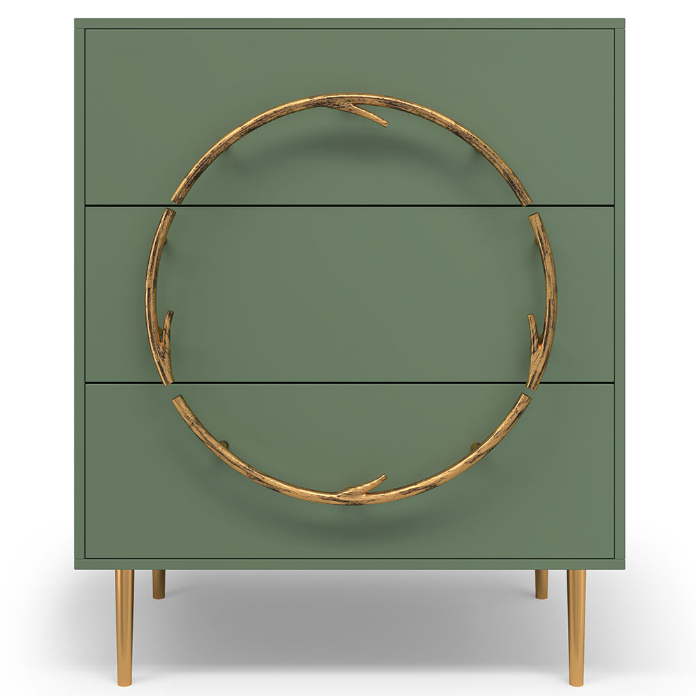 Комод Арт Колор matte Стайл Голд с 3 ящиками Зеленый нефрит матовый