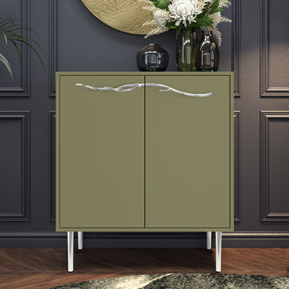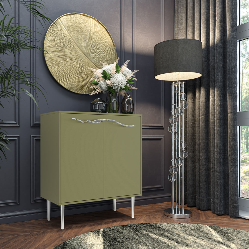 Комод Арт Колор matte Стайл Сильвер с 2 полками Зеленая олива матовый