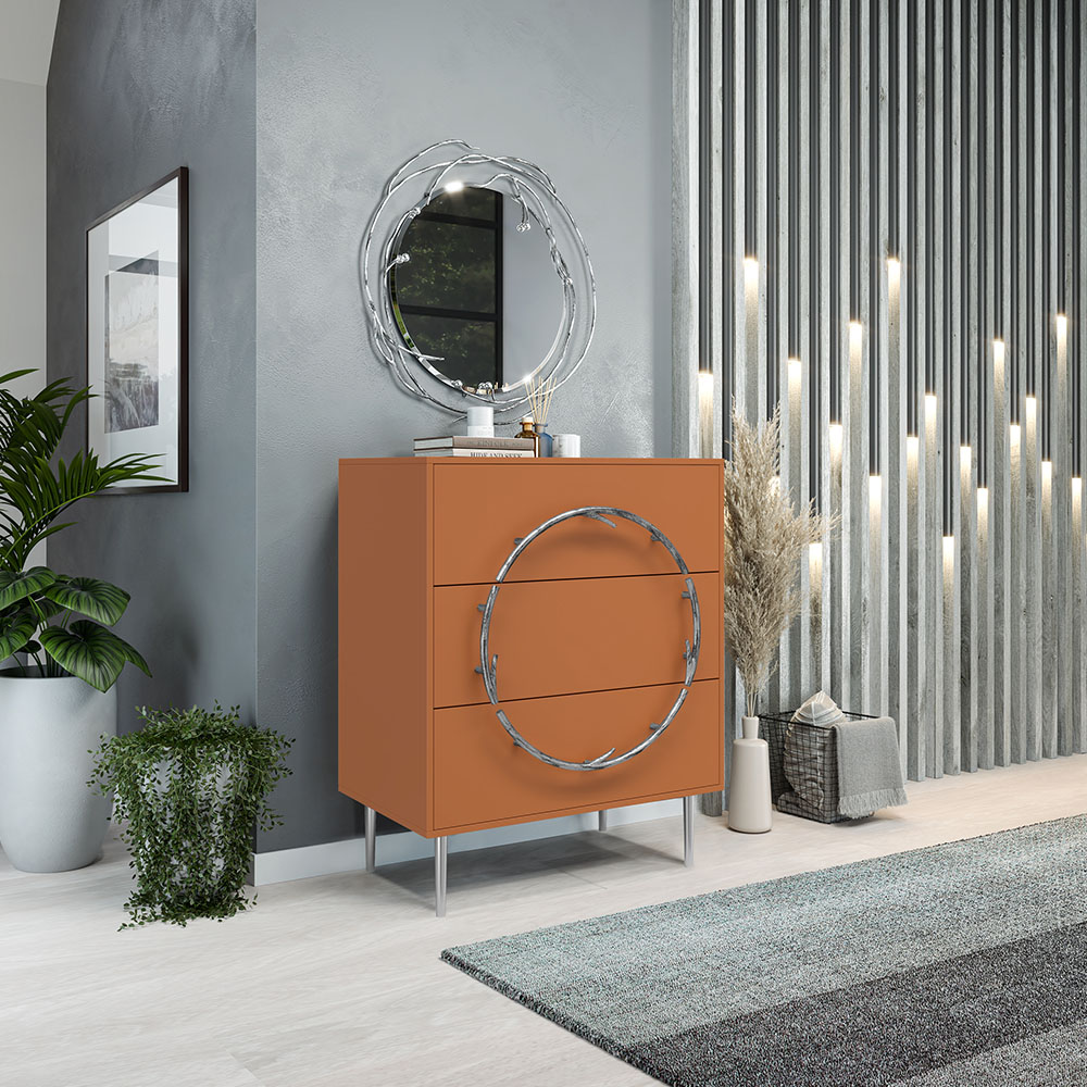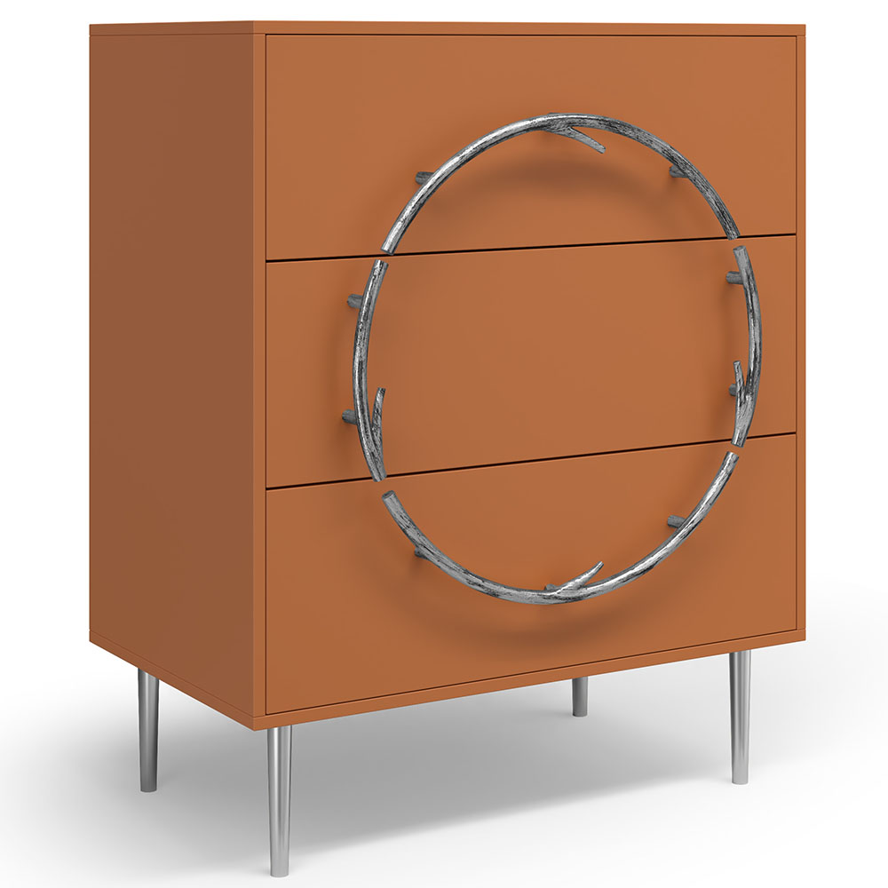 Комод Арт Колор matte Стайл Сильвер с 3 ящиками оранжевый матовый