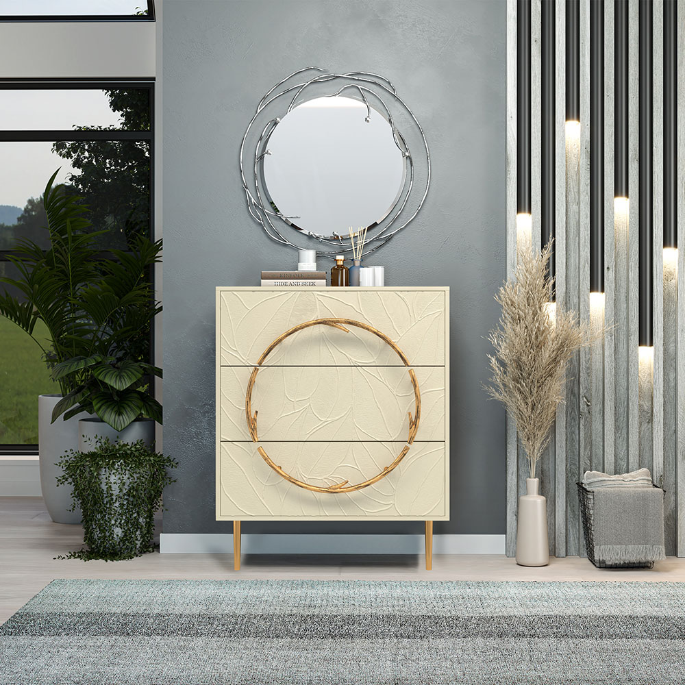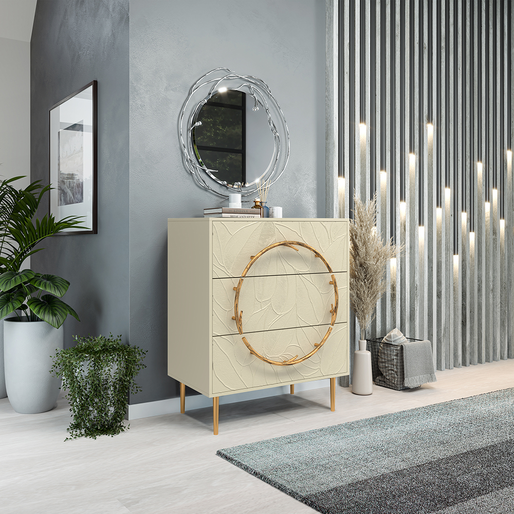 Комод Арт Колор с 3-мя ящиками leaves Стайл Сильвер Серый шелк
