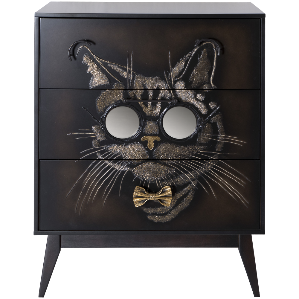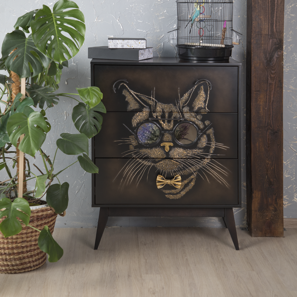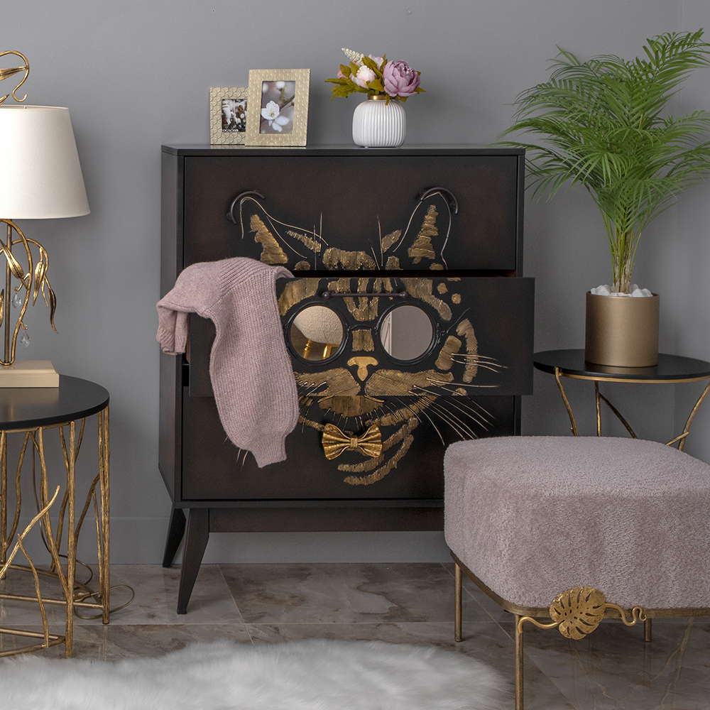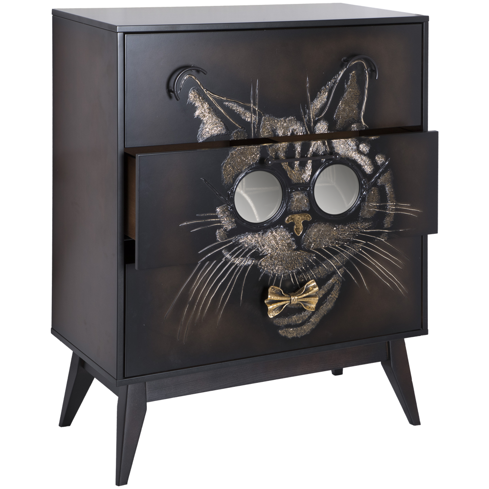 Комод BOGACHO Кот Саймон коричневый из коллекции Фьюжин – это образ современности вне времени.Конические ножки и прочный каркас выполнены из мдф, декоративные элементы изготовлены вручную из мраморной пудры и легированной стали вручную. Комод имеет три выдвижных ящика и доставляется в собранном виде.Добавьте в интерьер своего пространства уюта и атмосферу гармонии вместе с эксклюзивными изделиями BOGACHO.