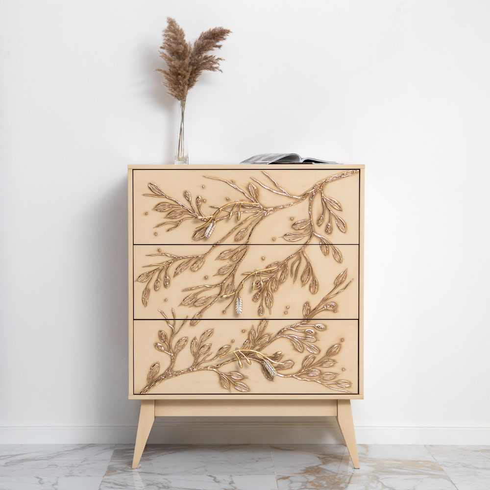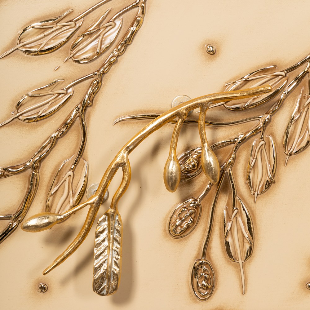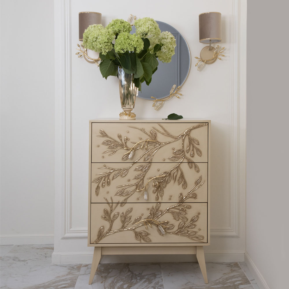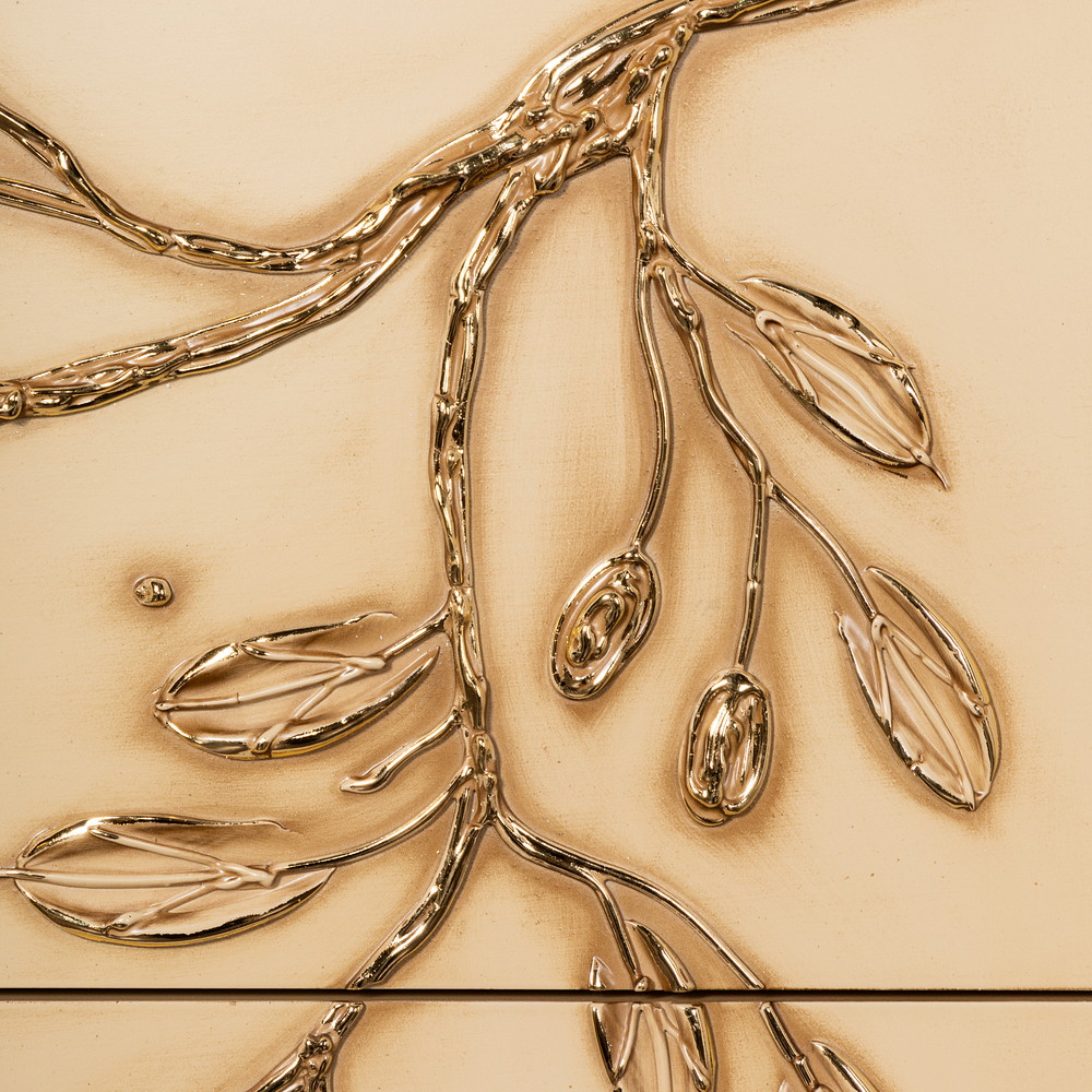 Комод BOGACHO Oliva Branch бежевый (ручная работа) – необычная мебель, которую интересно наблюдать со всех ракурсов. Красиво детализированные природные формы вдохновляют и отображают творческий, экологичный образ жизни.Декоративные элементы выполнены из легированной стали и отлиты из натурального коелгинского мрамора, затем отшлифованы и патинированы вручную.Дизайн в эко-стиле позволяет прикоснуться к природе, благоприятно воздействует на человека и создает уютную атмосферу дома. Наполните свой дом уютом и теплом