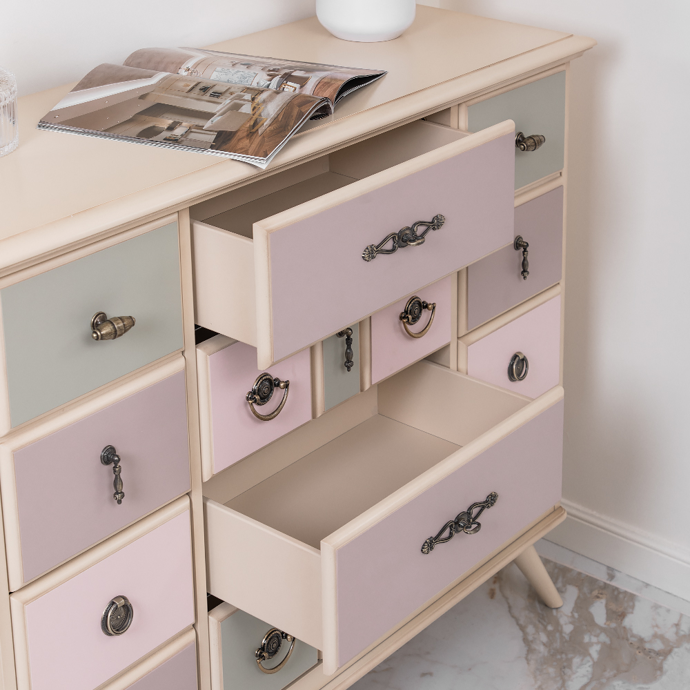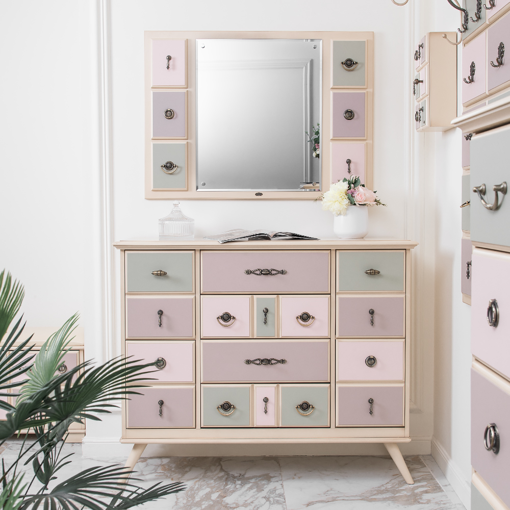 Большой оригиналЭтот комод невероятно вместительный и надежный. Он оборудован большим количеством ящиков, в которых можно хранить все самое необходимое. При его изготовлении используются латунная фурнитура испанского производства и качественные европейские направляющие (фирма Blum , Австрия). Каркас комода и ящики выполнены из мдф. Поверхность тонирована, патинирована и покрыта лаком.