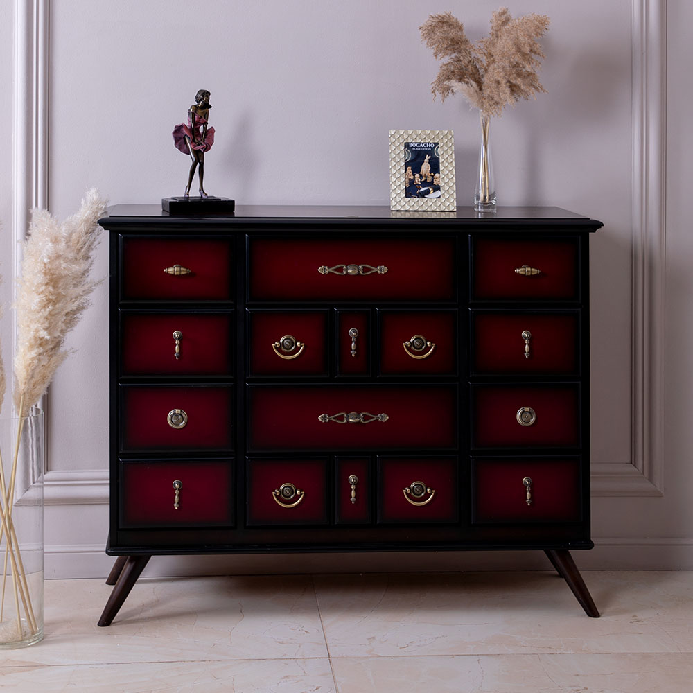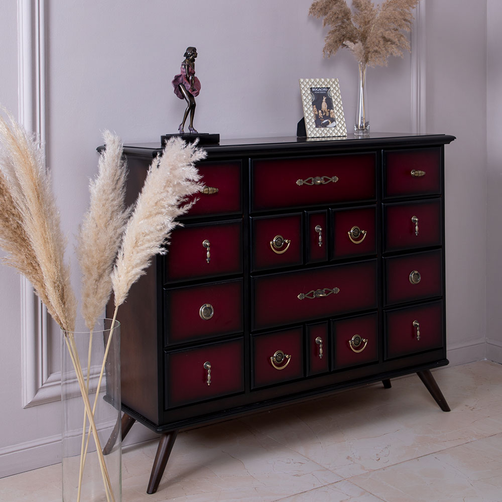 Большой оригиналЭтот комод невероятно вместительный и надежный. Он оборудован большим количеством ящиков, в которых можно хранить все самое необходимое. При его изготовлении используются латунная фурнитура испанского производства и качественные европейские направляющие (фирма BLUM, Австрия). Каркас комода и ящики выполнены из МДФ. Поверхность тонирована, патинирована и покрыта лаком.