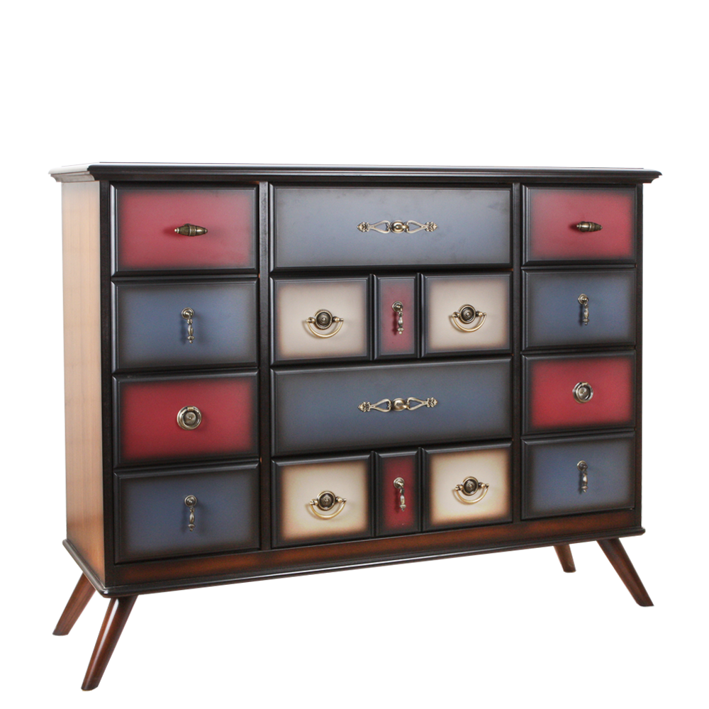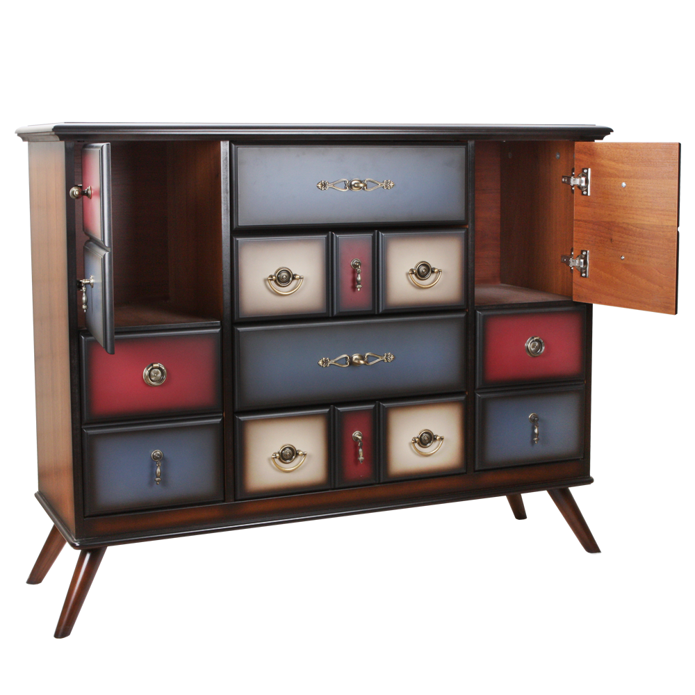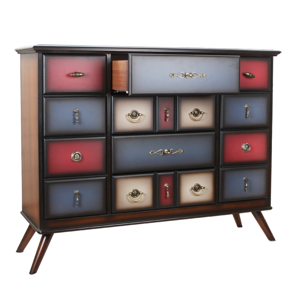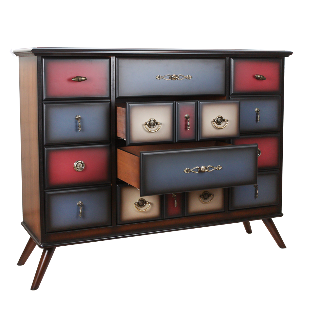 Большой оригиналЭтот комод невероятно вместительный и надежный. Он оборудован большим количеством ящиков, в которых можно хранить все самое необходимое. При его изготовлении используются латунная фурнитура испанского производства и качественные европейские направляющие (фирма Blum, Австрия). Каркас комода и ящики выполнены из МДФ. Поверхность тонирована, патинирована и покрыта лаком.