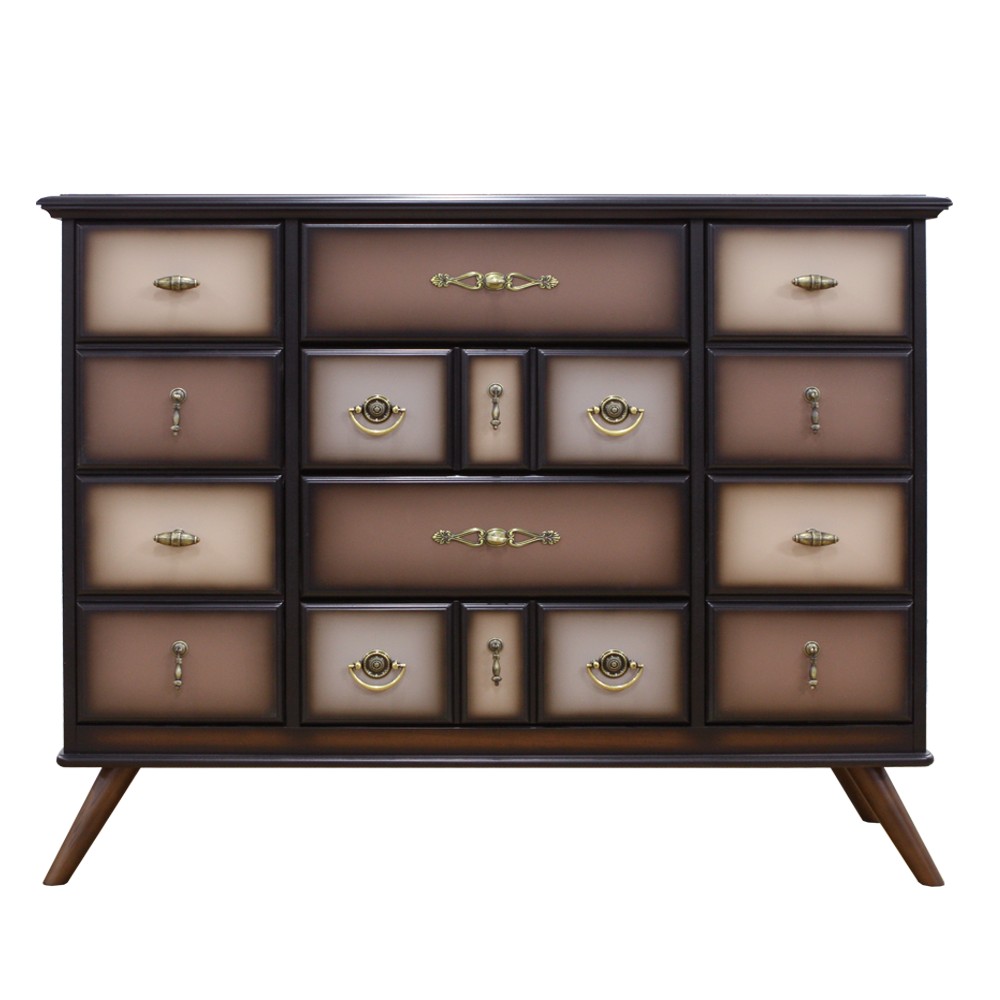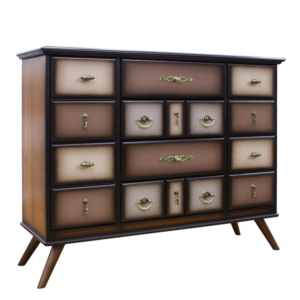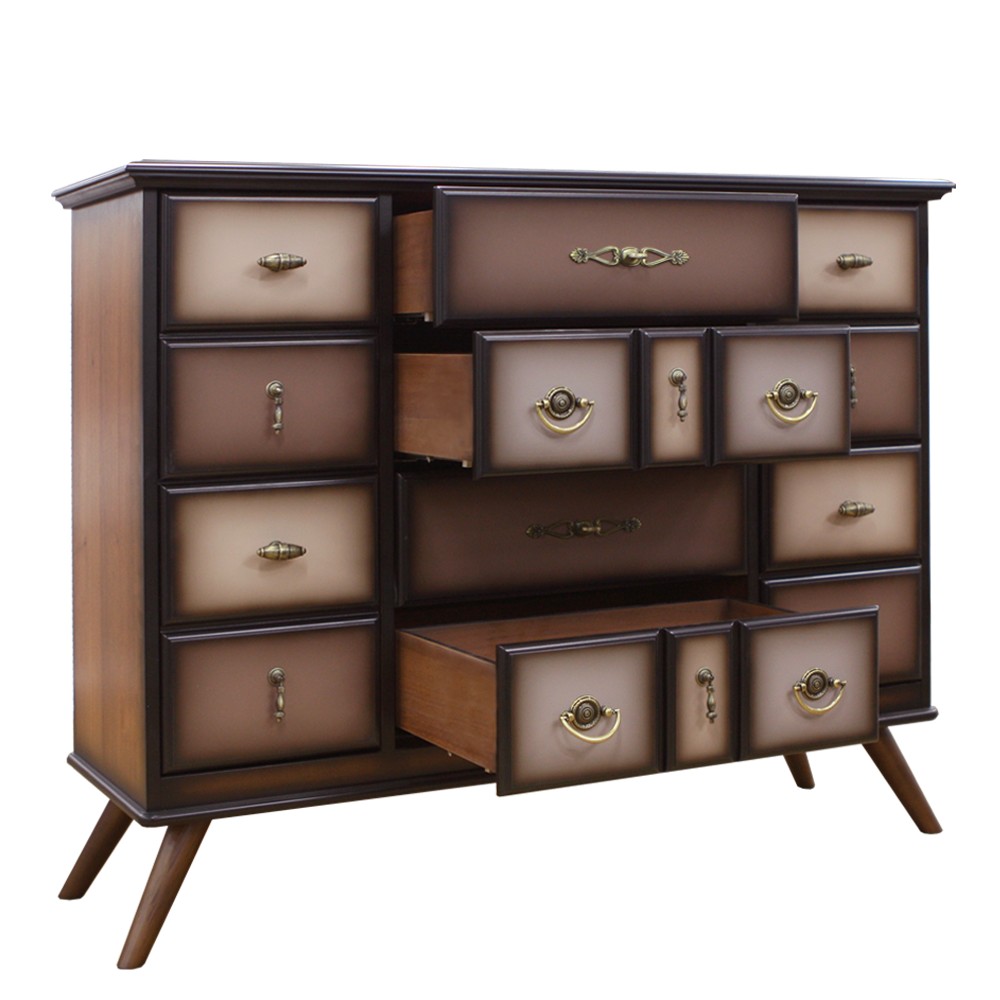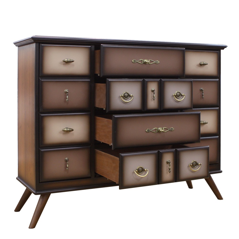 Всё в одномНаходка для тех, кто стремится к тому, чтобы дизайн прихожей (гостиной, спальни, будуара и прочее) был абсолютно оригинальным и максимально функциональным. Комод «Пандора - 2» - это красота и эксклюзивность, столь необходимые современному интерьеру, которые сошлись вместе с практичностью и высочайшим качеством исполнения. Большой оригиналЭтот комод невероятно вместительный и надежный. Он оборудован большим количеством ящиков, в которых можно хранить все самое необходимое. При его изготовлении используются латунная фурнитура испанского производства и качественные европейские направляющие. Каркас комода и ящики выполнены из МДФ. Поверхность тонирована, патинирована и покрыта лаком. Возможность для импровизацииКоллекция предусматривает не только несколько вариантов материалов изготовления, но и богатейшую цветовую гамму - более 20 цветов. Можно подобрать однотонный вариант или выбрать подходящее сочетание, которое без труда впишется в уже существующую цветовую палитру помещения.