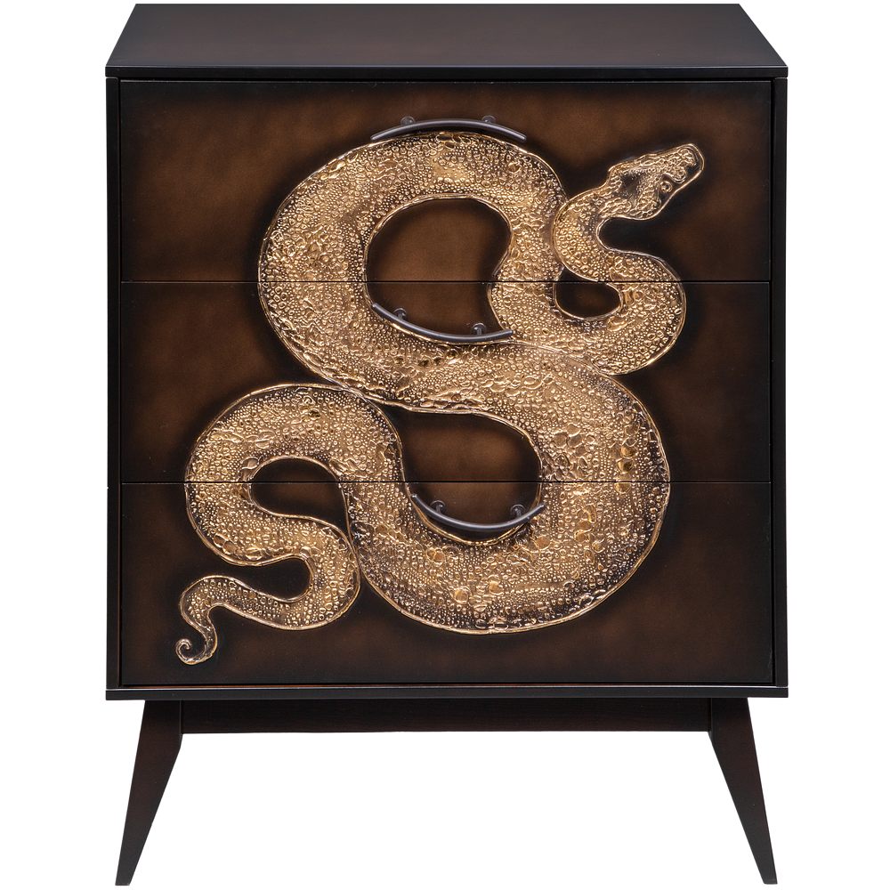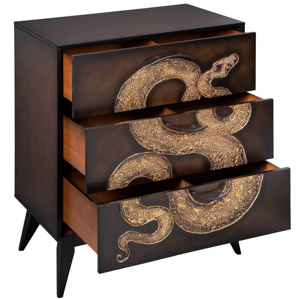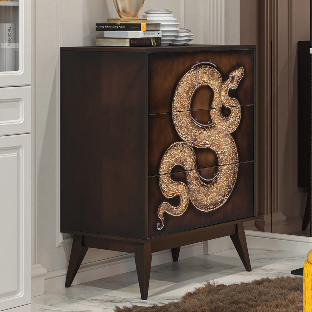 Комод из МДФ с тремя выдвижными ящиками. Комод BOGACHO - это образ современности вне времени. Конические ножки и прочный каркас выполнены из МДФ, декоративные элементы изготовлены из мраморной пудры и легированной стали, отшлифованы и патинированы вручную. Комод имеет три выдвижных ящика и доставляется в собранном виде. Добавьте в интерьер своего пространства уюта и атмосферу гармонии вместе с эксклюзивными изделиями BOGACHO.