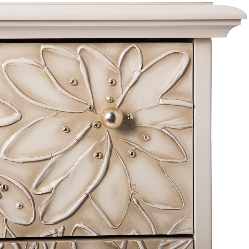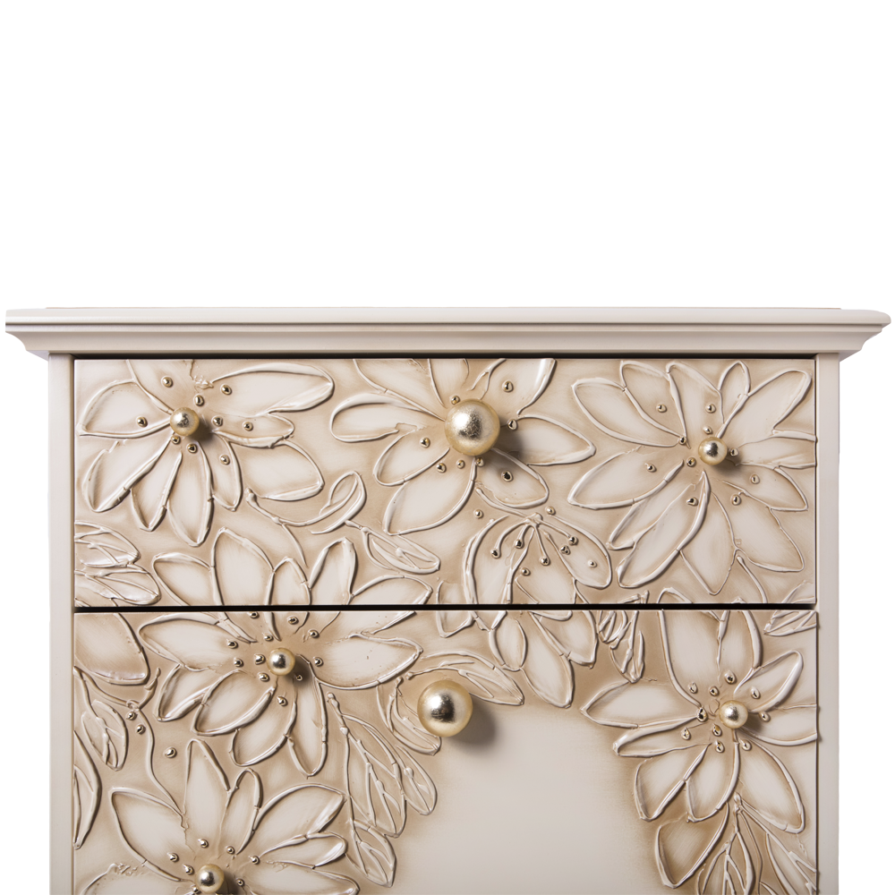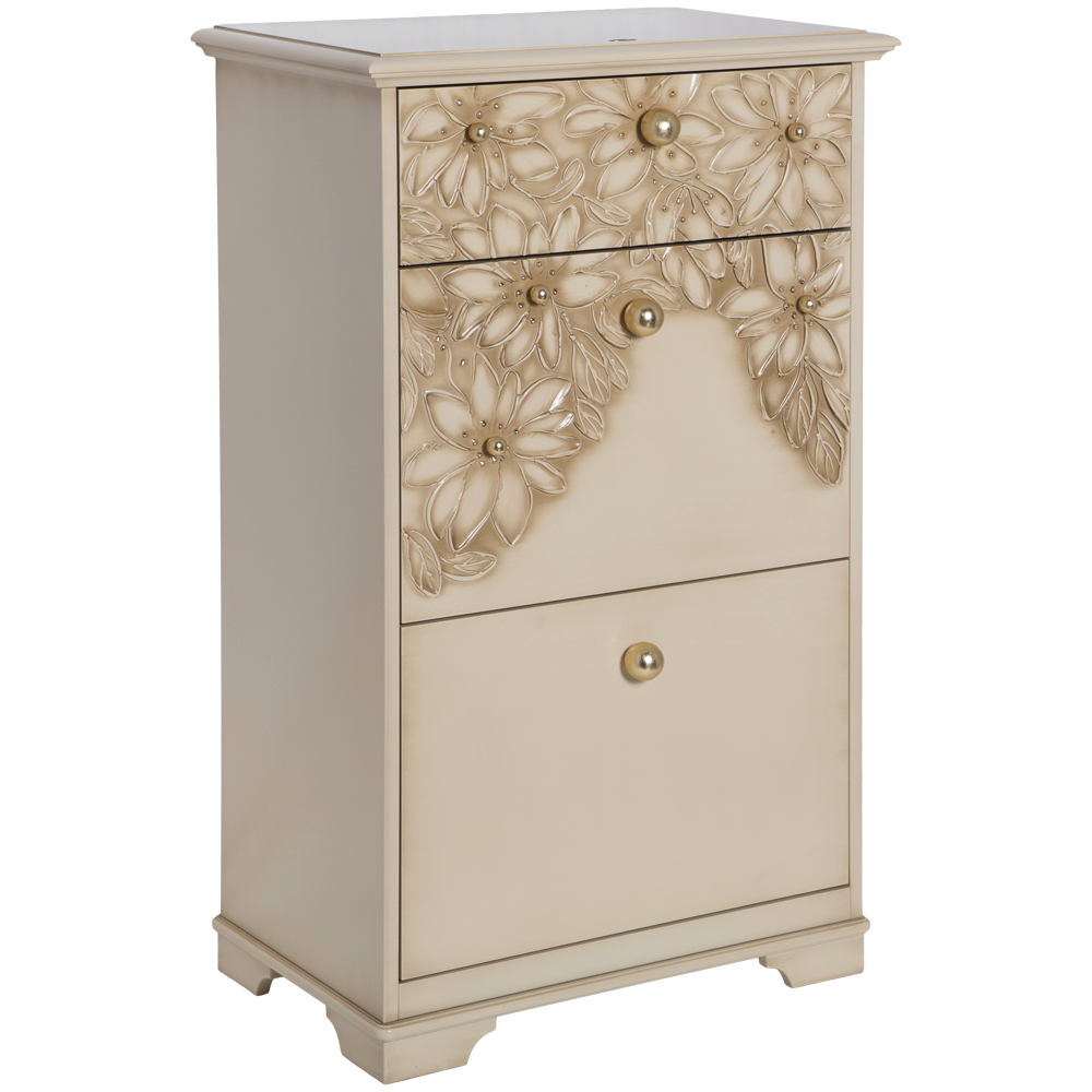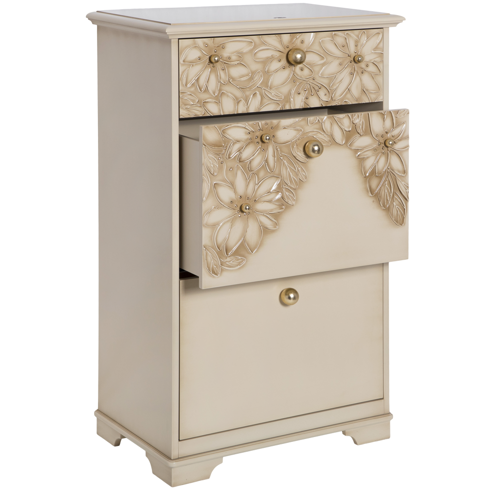 Комод BOGACHO Терра с 3 ящиками кремового цвета (ручная работа) - это сочетание безупречной гармонии простоты, утонченности, комфорта и безупречного стиля.Коллекция отличается уникальными фасадами, декорированными мраморной пудрой. Каждый рисунок наносится вручную без применения штамповки.Фабрика BOGACHO гарантирует высочайшее качество своих изделий, и это подтверждается сертификатами, премиями и наградами, завоеванными на специализированных выставках, а также благодарными отзывами клиентов. Компания использует лучшие материалы при изготовлении своей продукции – натуральные, безопасные, экологичные, передовые.