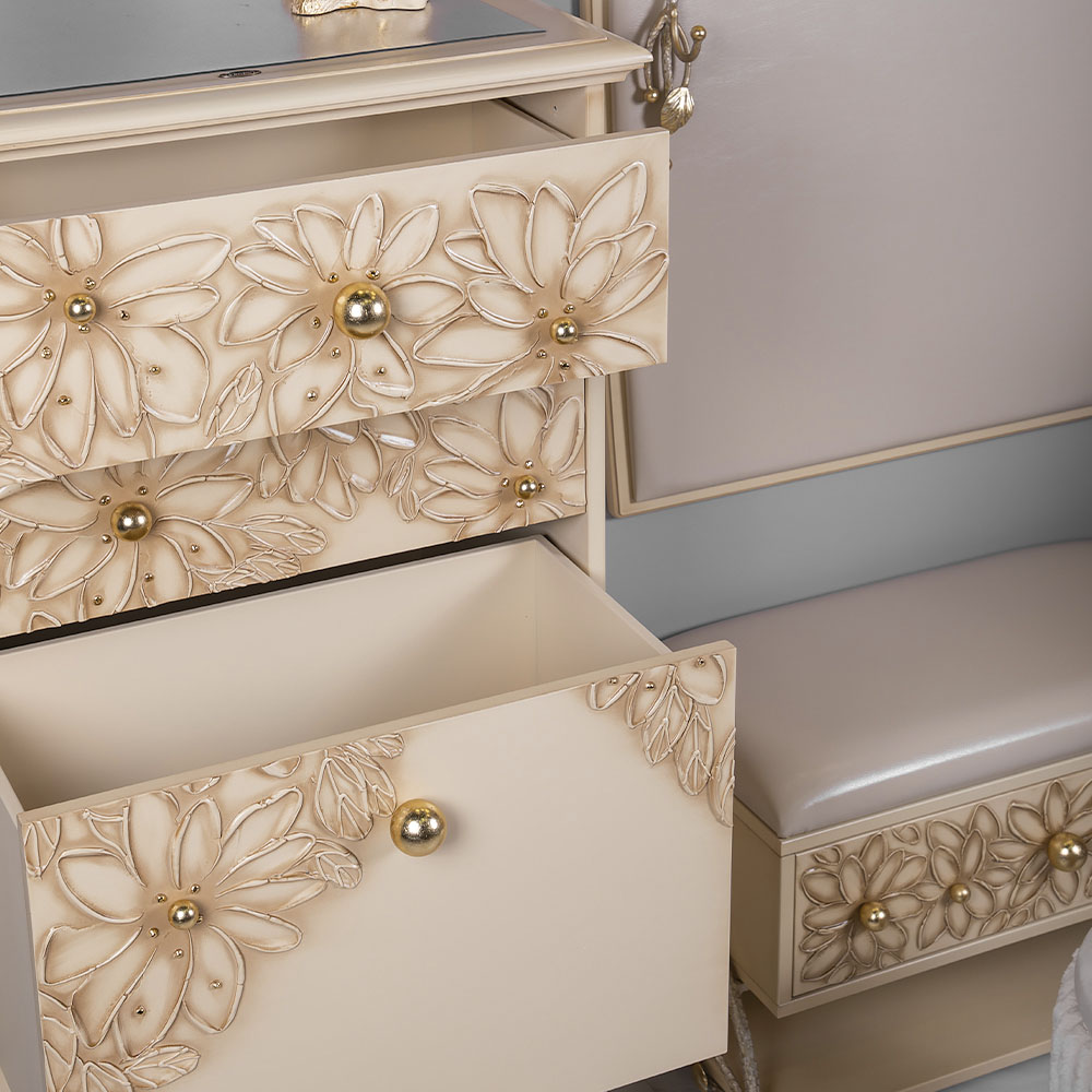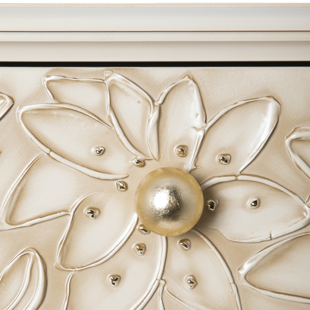 Комод Терра - это сочетание безупречной гармонии, утонченности и безупречного стиля.Коллекция отличается уникальными фасадами, декорированными мраморной пудрой. Каждый рисунок наносится вручную без применения штамповки.Компания использует лучшие материалы при изготовлении своей продукции – натуральные, безопасные и экологичные. Изделие приходит в собранном виде и не требует последующей сборки.