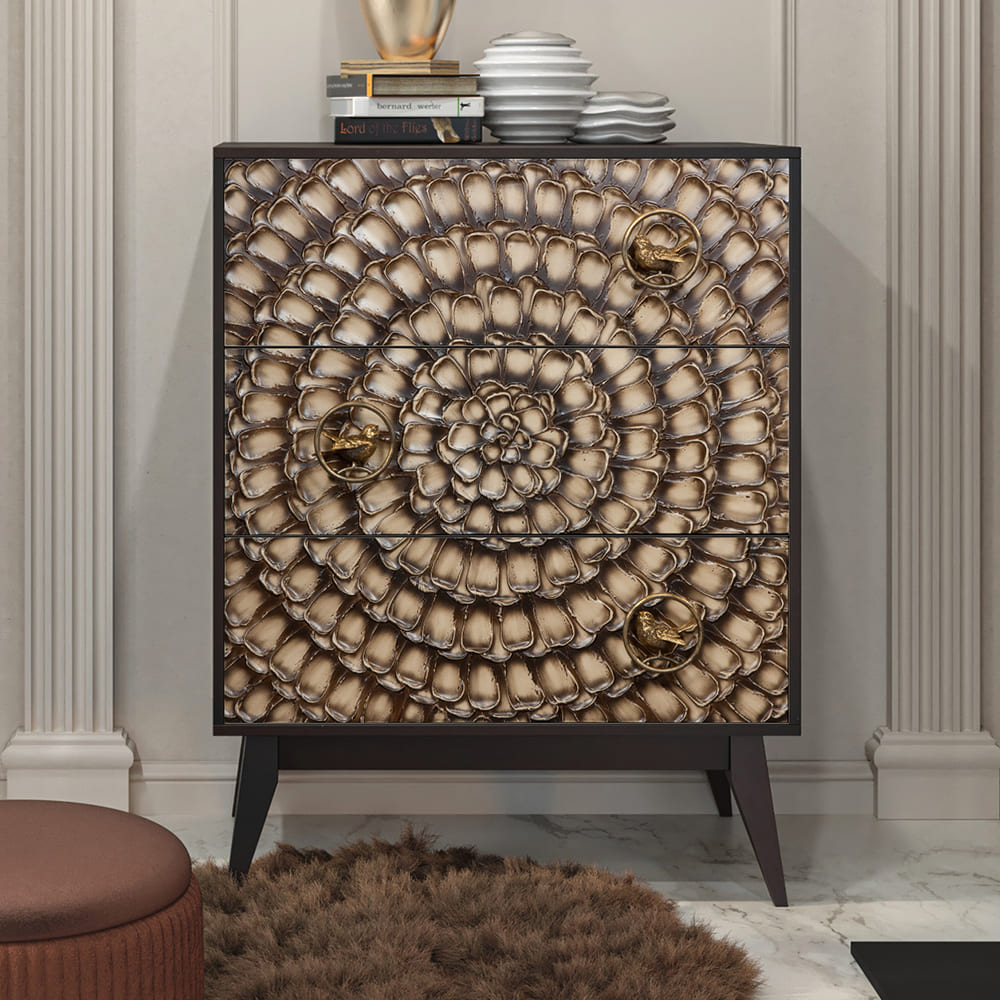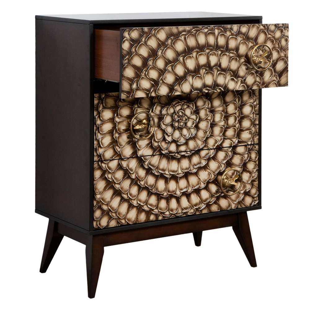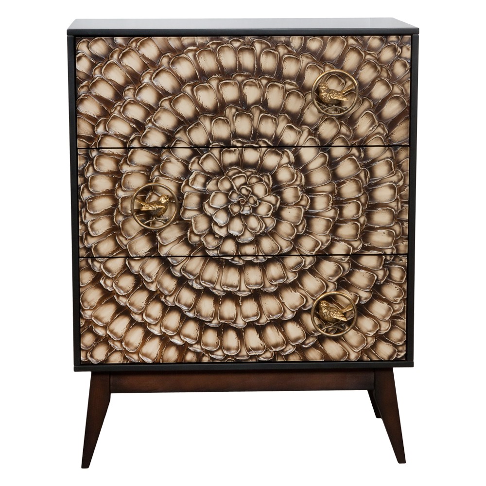 Большой цветок и маленькие птички на нем – этот образ во все времена нес в себе положительную энергетику. Коллекция «Терра» - дань той красоте, которой щедро окружает нас природа, экостиль, столь популярный в последнее время. Однако мастерами BOGACHO двигало не только желание соответствовать модной теме, а нечто большее. Они готовы создавать прекрасное в надежде, что цветов в нашей жизни будет больше чем оружия! Великие символыПтицы выводят свои звонкие и красивые трели - заслушаешься! От звука их волшебного пения мир становится лучше, добрее и светлее. Поющая птица - символ счастья, свободы, возрождения. Это надежда на то, что все проблемы останутся позади, и впереди нас ждет мир, полный добра, радости, благополучия и света, мир, где нас будут окружать только любящие нас люди. Цветы имеют не менее позитивную и жизнеутверждающую символику. С ними ассоциируются самые замечательные слова: нежность, очарование, радость, вдохновение, мир, любовь. Цветы неразрывно связаны с наиболее важными этапами жизни. Чем торжественнее момент, тем больше цветов. Хотя, порой, одинокой розы в руке влюбленного достаточно для того, чтобы зародилось большое чувство, след от которого протянется в века через детей, внуков, правнуков... Одна маленькая роза, как символ любви. Как символ самой жизни. Уникальная ручная работаКомод «Терра» – это оригинальный дизайн, изысканность и высочайшее качество исполнения. Он выполнен вручную, что делает его уникальным, единственным в своем роде!