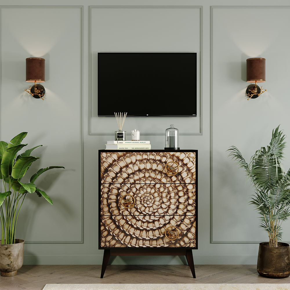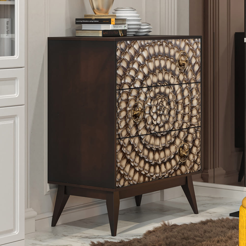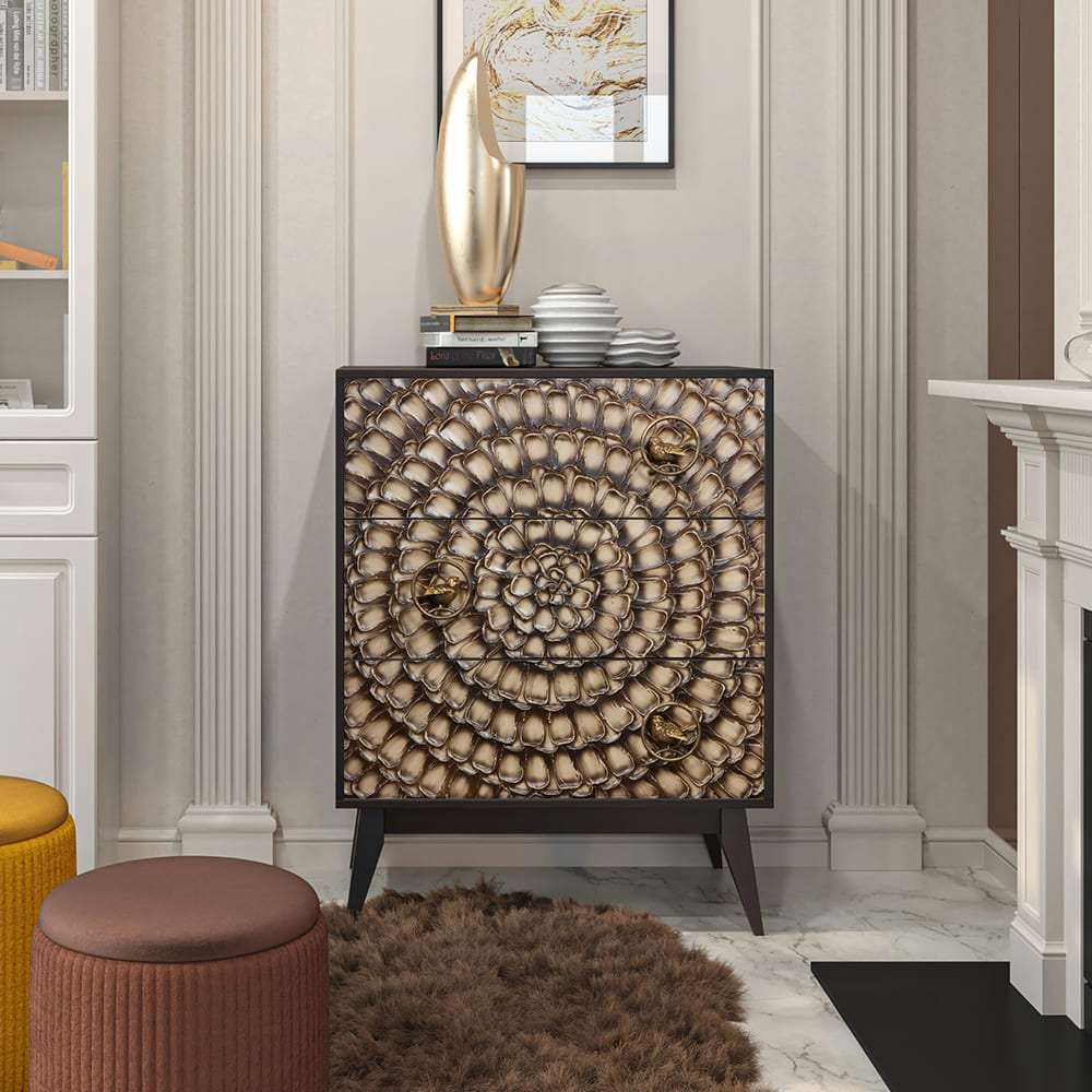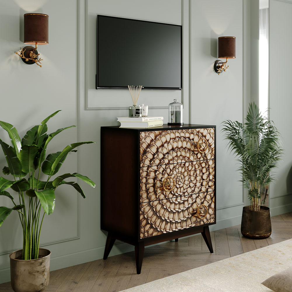 Большой цветок и маленькие птички на нем – этот образ во все времена нес в себе положительную энергетику. Коллекция «Терра» - дань той красоте, которой щедро окружает нас природа, экостиль, столь популярный в последнее время. Однако мастерами BOGACHO двигало не только желание соответствовать модной теме, а нечто большее. Они готовы создавать прекрасное в надежде, что цветов в нашей жизни будет больше чем оружия! Великие символыПтицы выводят свои звонкие и красивые трели - заслушаешься! От звука их волшебного пения мир становится лучше, добрее и светлее. Поющая птица - символ счастья, свободы, возрождения. Это надежда на то, что все проблемы останутся позади, и впереди нас ждет мир, полный добра, радости, благополучия и света, мир, где нас будут окружать только любящие нас люди. Цветы имеют не менее позитивную и жизнеутверждающую символику. С ними ассоциируются самые замечательные слова: нежность, очарование, радость, вдохновение, мир, любовь. Цветы неразрывно связаны с наиболее важными этапами жизни. Чем торжественнее момент, тем больше цветов. Хотя, порой, одинокой розы в руке влюбленного достаточно для того, чтобы зародилось большое чувство, след от которого протянется в века через детей, внуков, правнуков... Одна маленькая роза, как символ любви. Как символ самой жизни. Уникальная ручная работаКомод «Терра» – это оригинальный дизайн, изысканность и высочайшее качество исполнения. Он выполнен вручную, что делает его уникальным, единственным в своем роде!